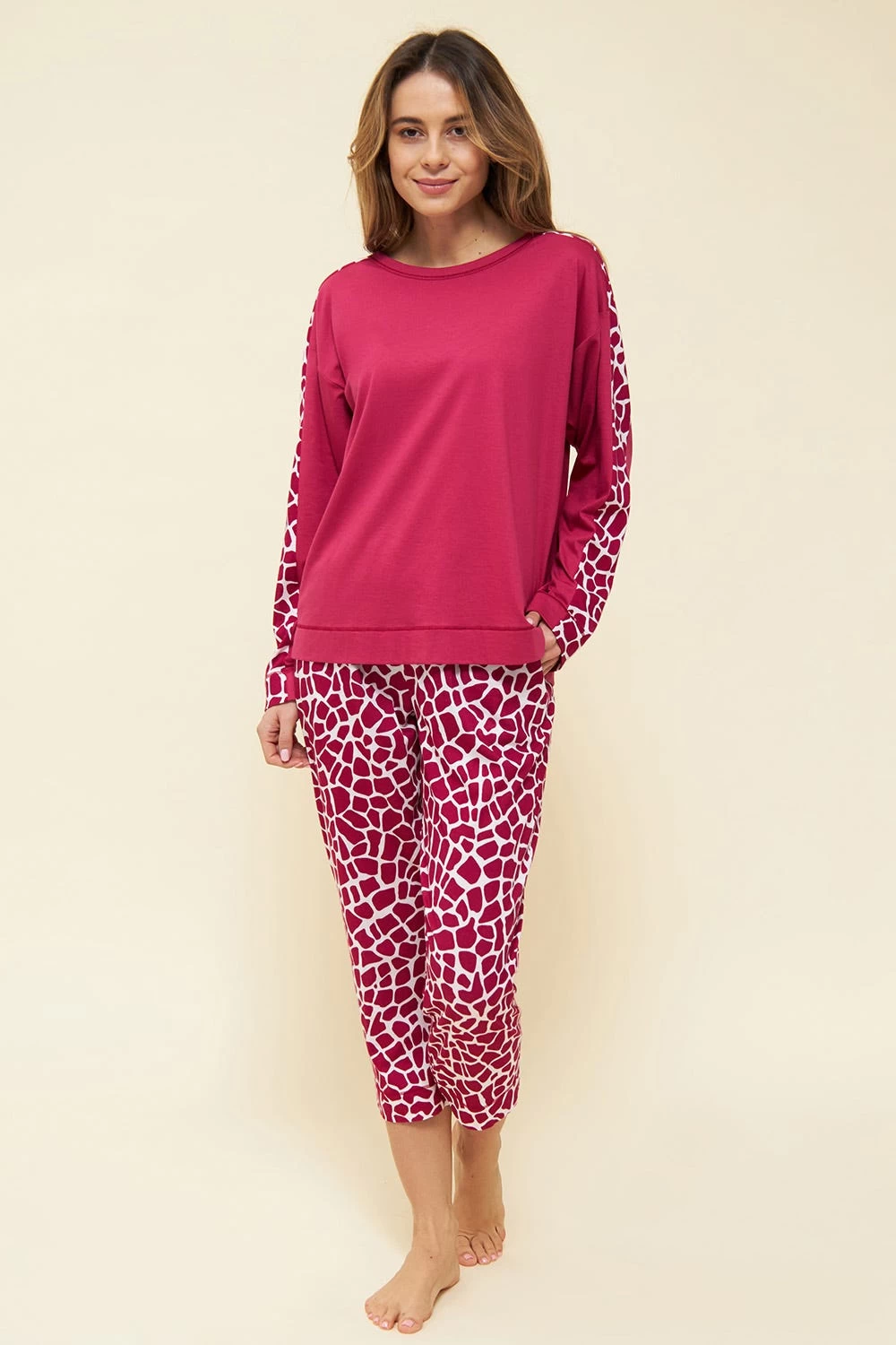 Die bedruckte Hose ist gerade geschnitten und hat seitliche Taschen. Der breite, weiche Gummibund sorgt für Bequemlichkeit. Kleine Saumschlitze geben einen lässigen Look.