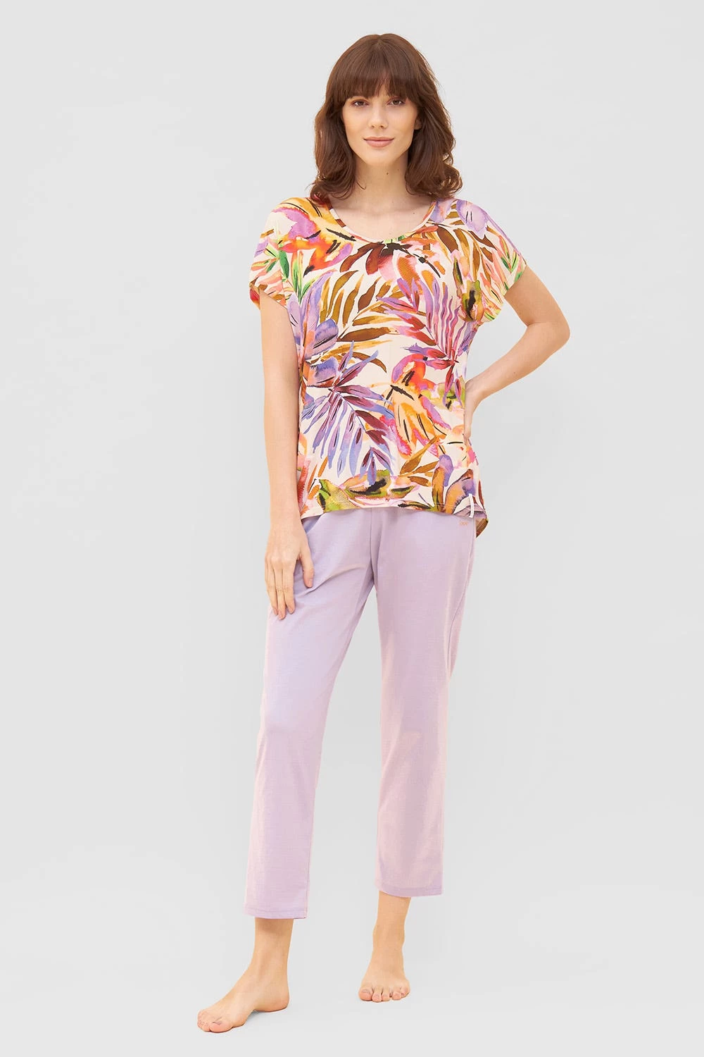 Pyjamashirt Im Pastellfarbenen Karodruck Grafisch Baumwolle/Modal Mix Und Match Große Größen Bis 54
