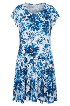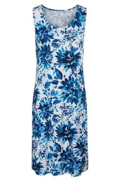 Strandkleid Im Blauen Blüten-Druck Rundhals Sommerkleid Viskose/Elasthan