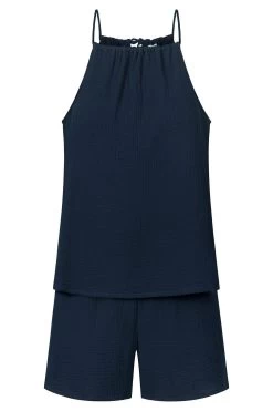 Sommerliches Set Aus Musselin Dunkelblau Top Shorts 100% Baumwolle