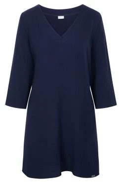 Strandkleid Aus Musselin Dunkelblau Sommer 3/4-Arm 100% Baumwolle