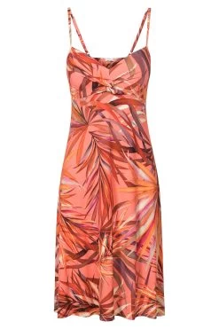 Spaghettiträger-Kleid Im Bunten Blätter-Druck Wickeloptik Viskose/Elasthan