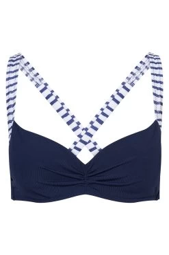 Bikini Oberteil Mit Raffungen Bügel Dunkelblau Ripp Recyceltes Polyester/Elasthan