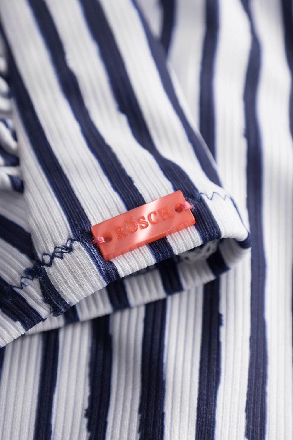 Das Bikini Oberteil im Streifen Dessin auf feiner Ripp-Struktur ist mit halt-gebenden Soft Cups, Bügeln sowie verstellbaren und abnehmbaren Trägern gefertigt. Ein Highlight bietet das Rösch Label in Koralle.