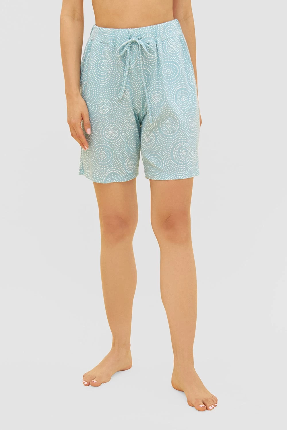 Bermuda aus bedrucktem Stoff mit Taschen. Ziernähte in passender Farbe und der weiche, komfortable Gummibund sorgen für Bequemlichkeit.