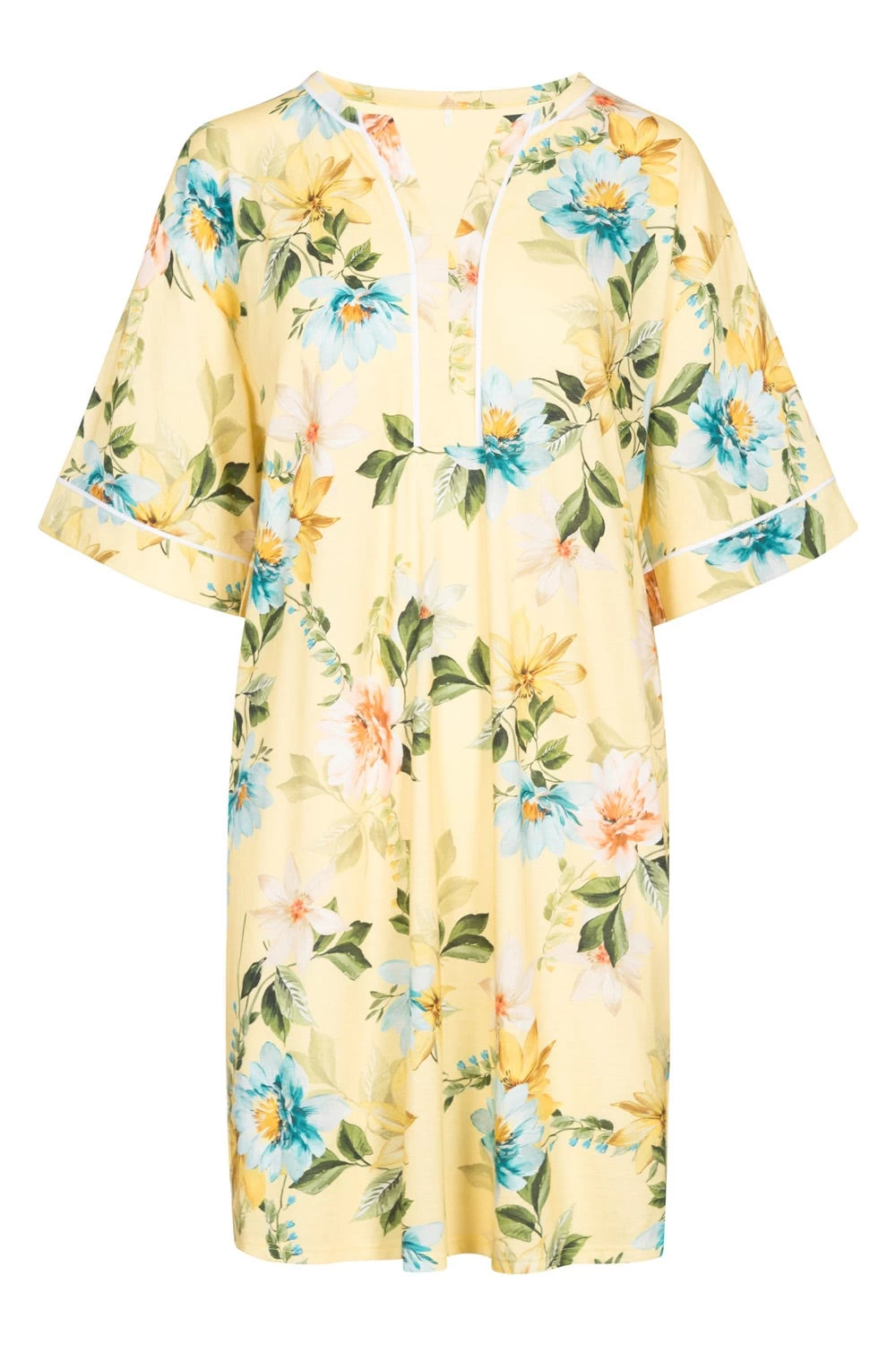 Bigshirt im Kimono-Look aus bedrucktem Jersey. Feine Paspeln an den Halsblenden und an den Ärmeln unterstreichen den anspruchsvollen Look.
