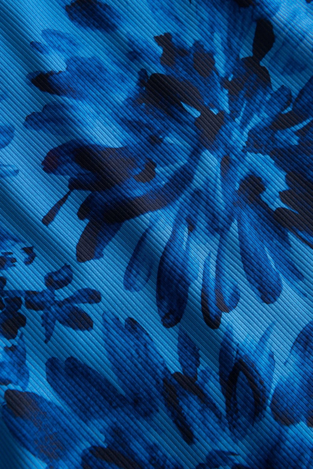 Bikini Oberteil Im Blauen Blüten-Druck Raffungen Recyceltes Polyester/Elasthan