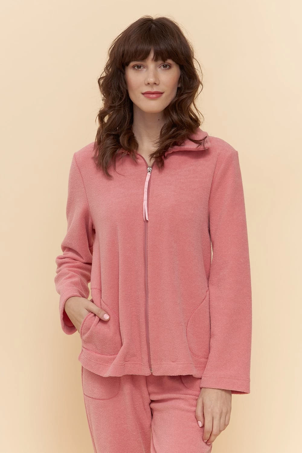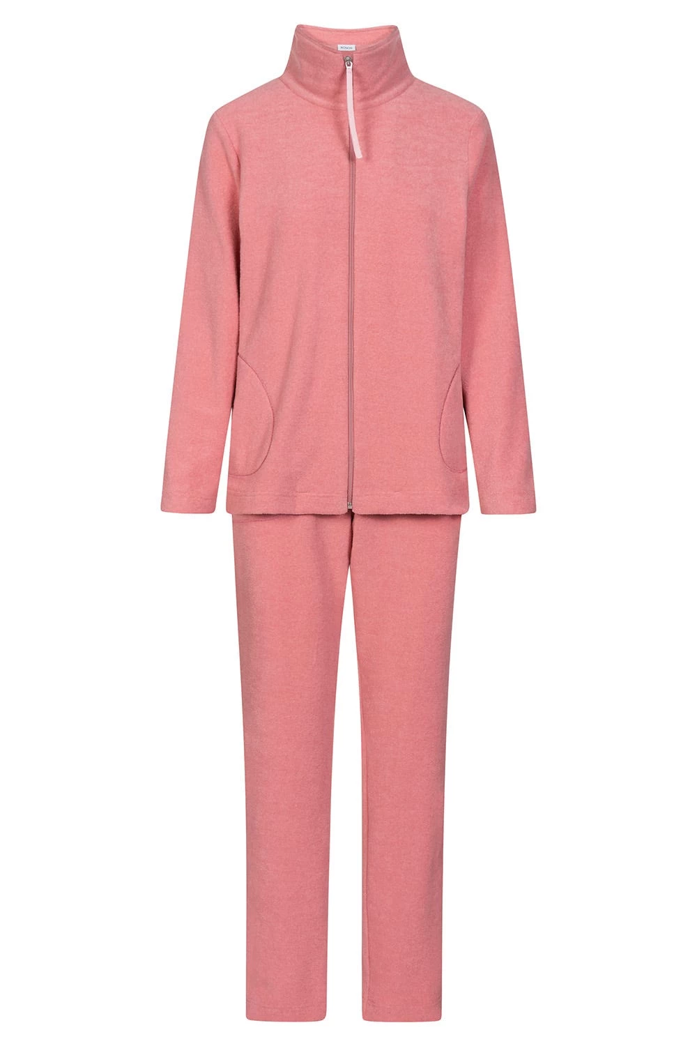 Der kuschelige Hausanzug ist innen besonders weich angeschmirgelt. Die seitlichen Taschen sorgen für Komfort, der Stehkragen hält angenehm warm. Die Hose ist gerade geschnitten und hat einen komfortablen Gummi Bund.