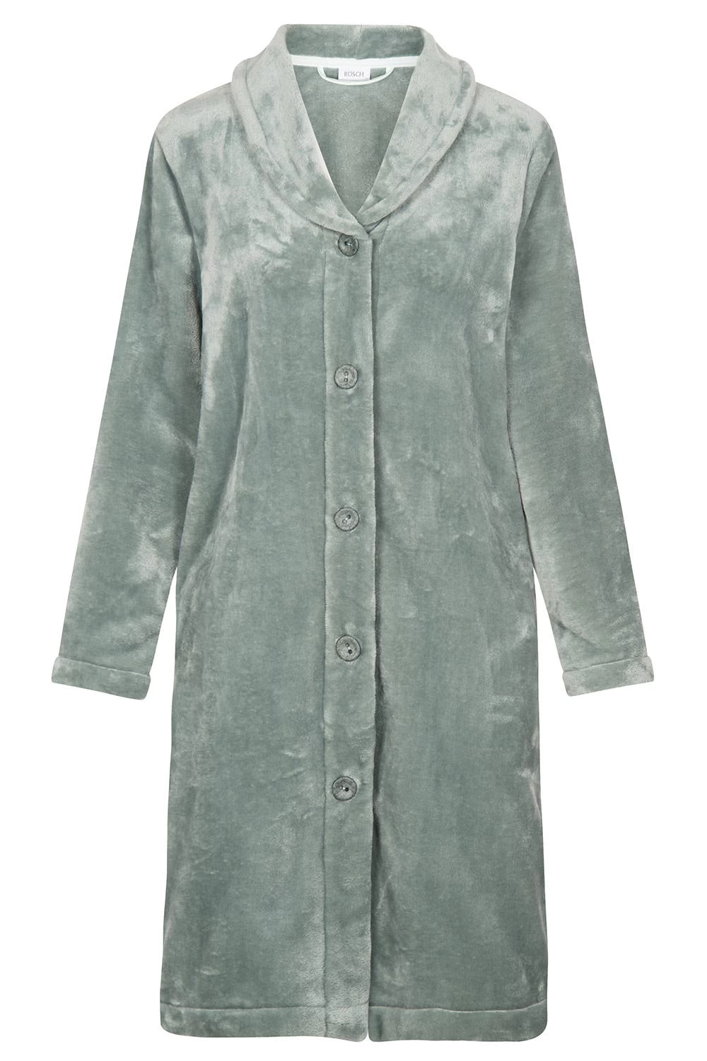 Der Lounge-Mantel aus kuscheligem Plüsch, ist extrem kuschelig und hat schöne, komfortable, große Knöpfe. Der Schalkragen schmiegt sich weich an den Hals und sorgt für gemütliche Wärme. Seitliche Taschen geben extra Komfort.