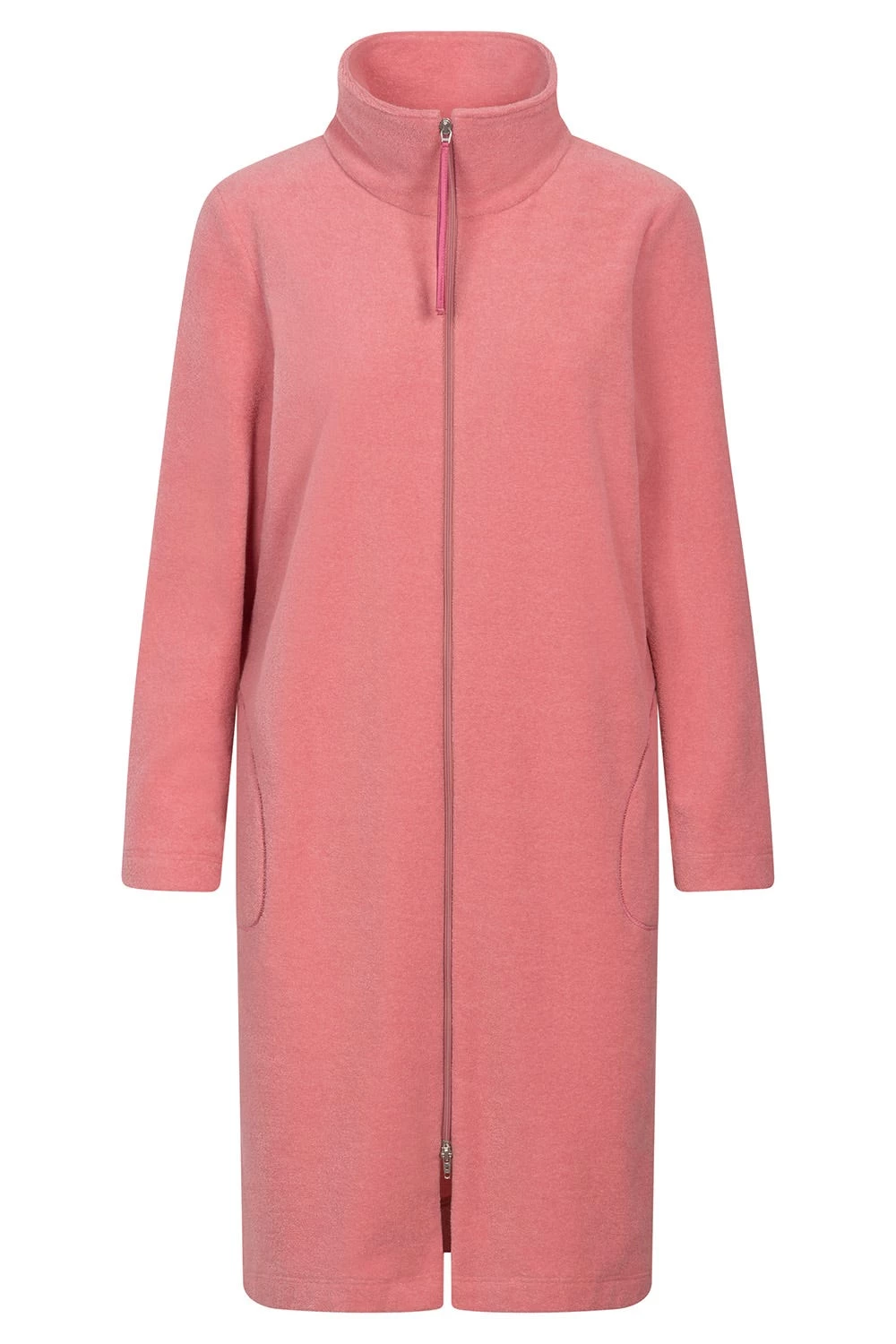 Der kuschelige Lounge-Mantel ist innen besonders weich angeschmirgelt. Die seitlichen Taschen sorgen für Komfort, der Stehkragen hält angenehm warm.