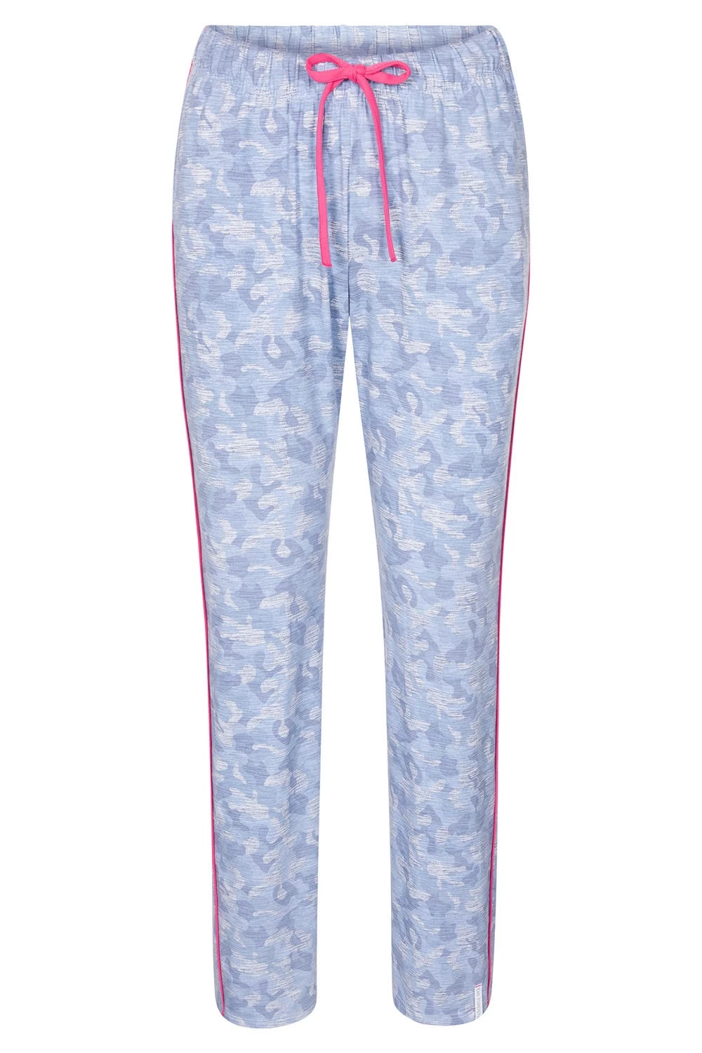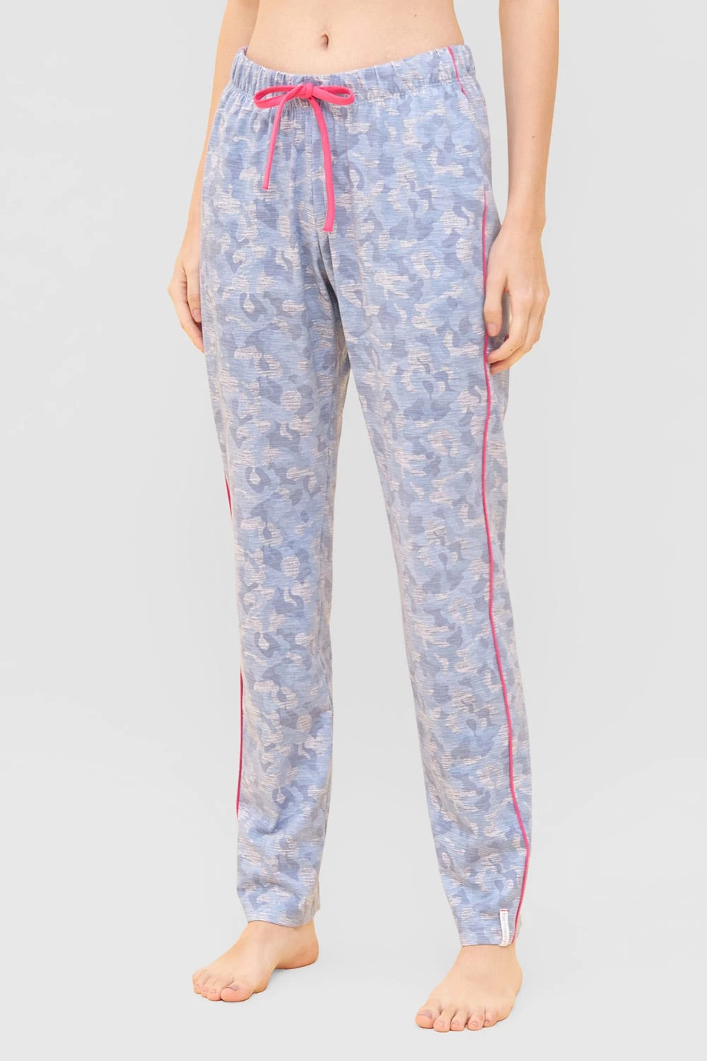Das Design in Camouflage-Optik besteht aus Baumwolle-Elasthan. Die Hose besitzt Taschen, eine schmale Silhouette sowie ein Bindeband und seitliche Details sind in Kontrastfarbe.