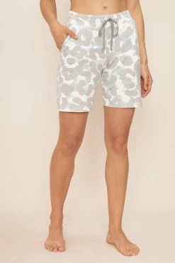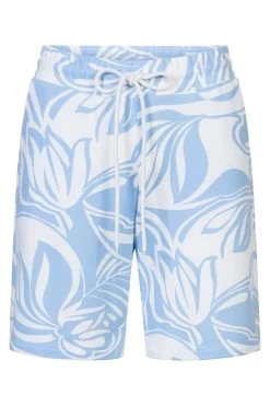 Bermuda Im Sommerlichen Camouflage-Druck Grau-Türkis Sweathose Loungehose Bio-Baumwolle/Elasthan