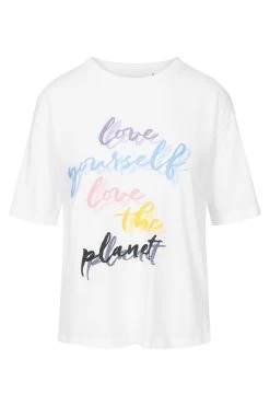T-Shirt Mit Schriftzug „love Yourself, Love The Planet“ Halbarm Mix & Match Baumwolle/Elasthan