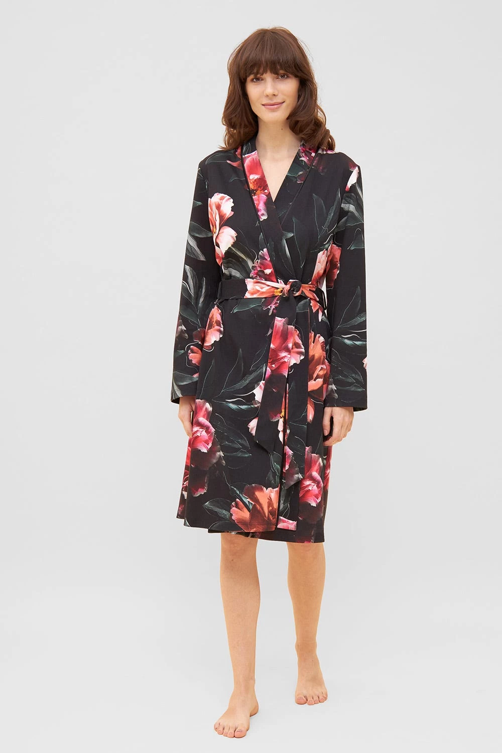 Eleganter Wickelmantel mit Blenden und feiner Paspelierung am Dekolleté. Die bequemen Schubtaschen und die angenehme Interlock-Ware sorgen für ein wohliges Gefühl.