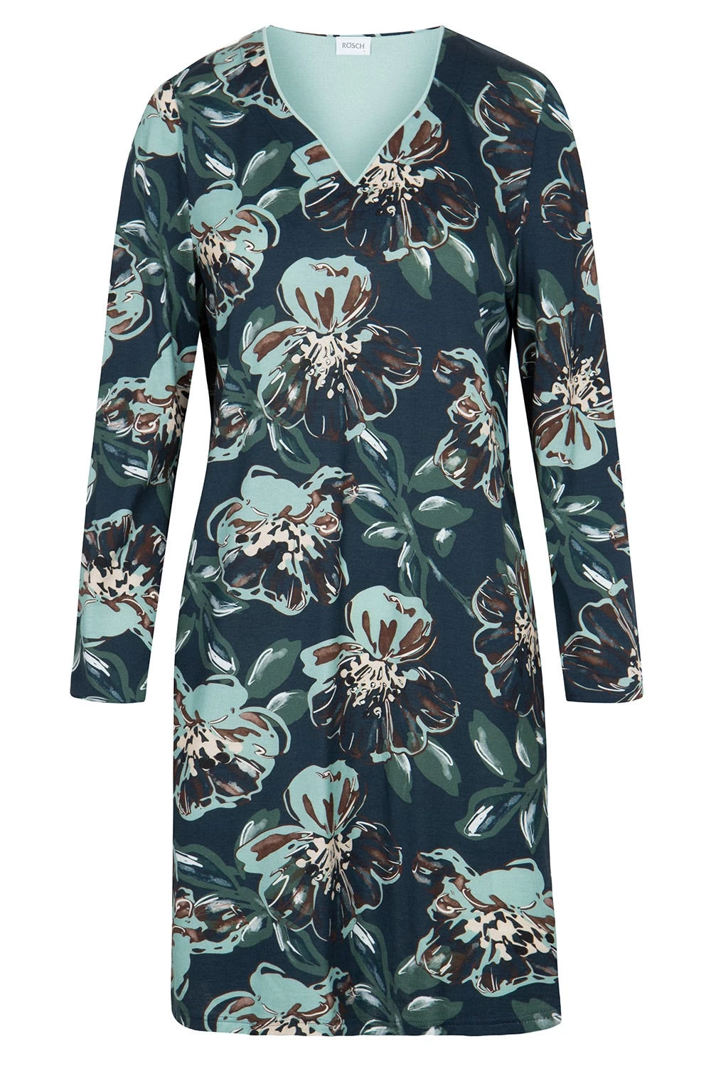 Nachthemd aus weichem Jersey in ansprechendem Druck. Das Halsloch ist mit passender Paspel in Uni am schön geschwungenen Halsloch hochwertig verarbeitet.
