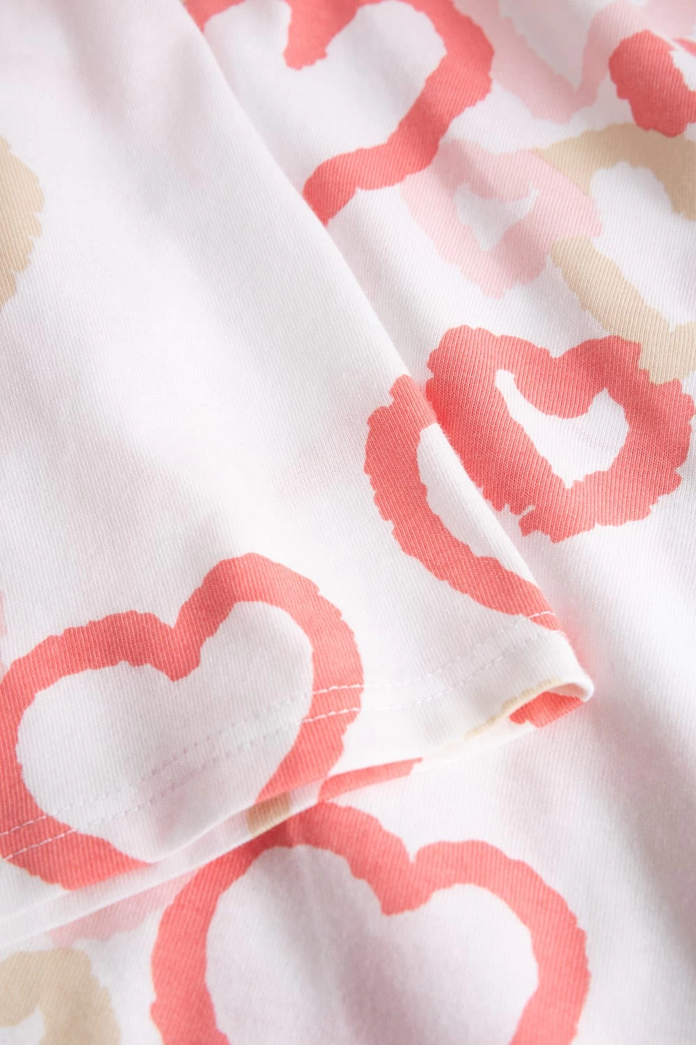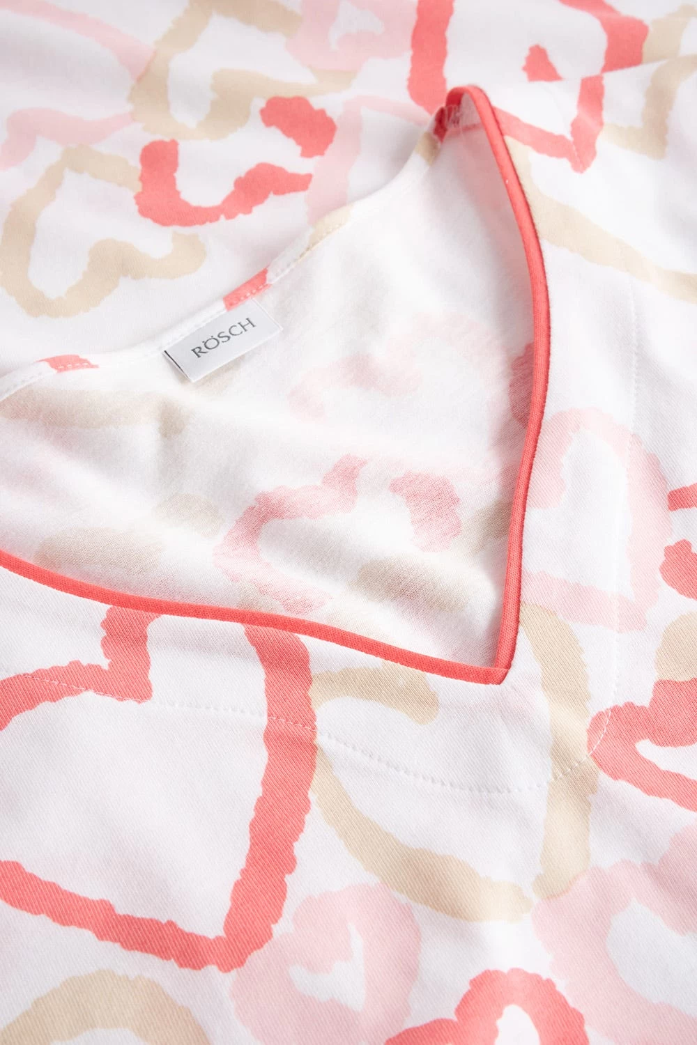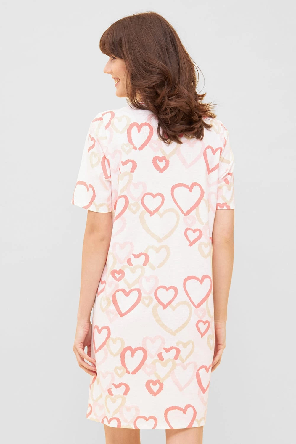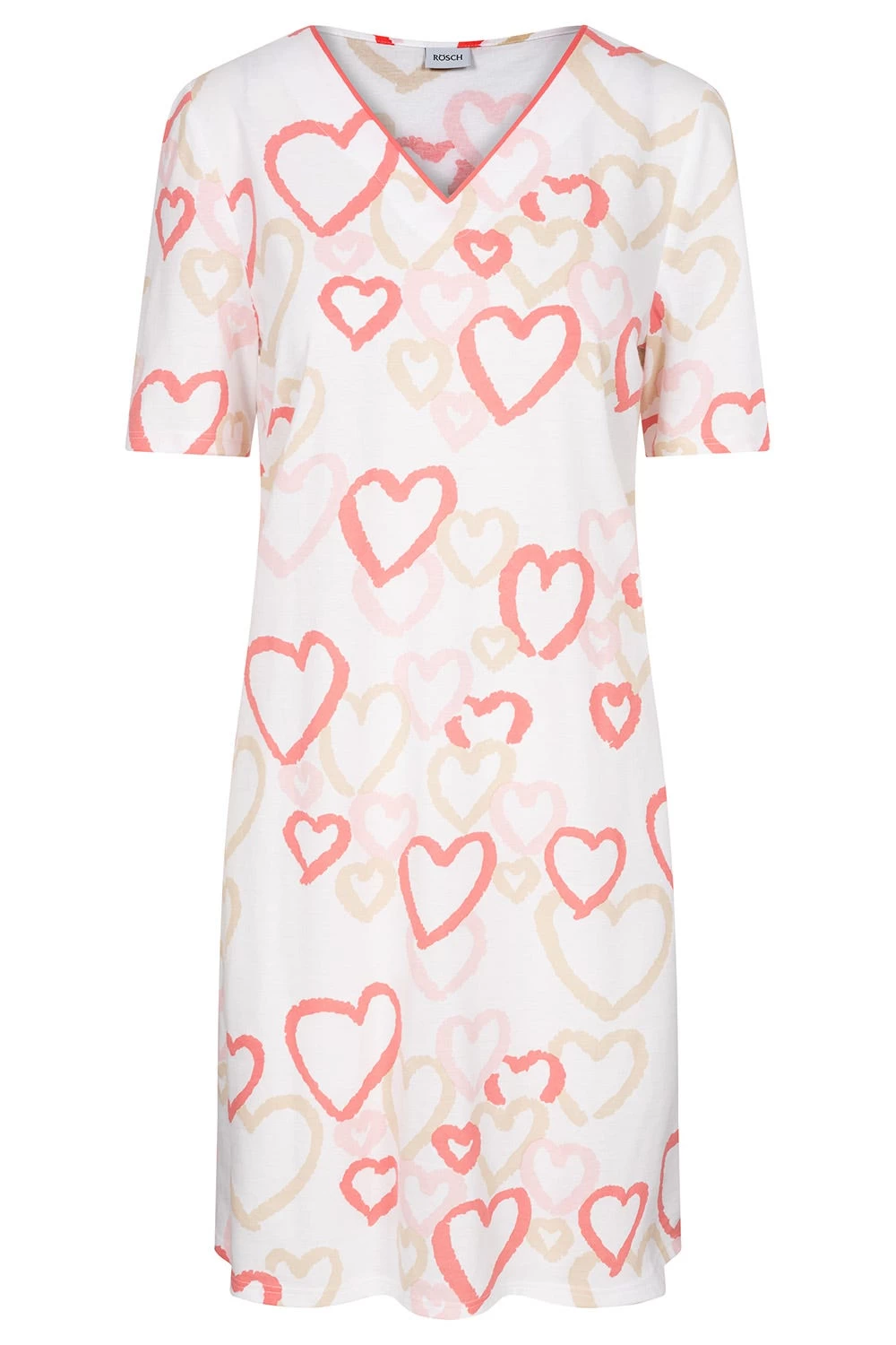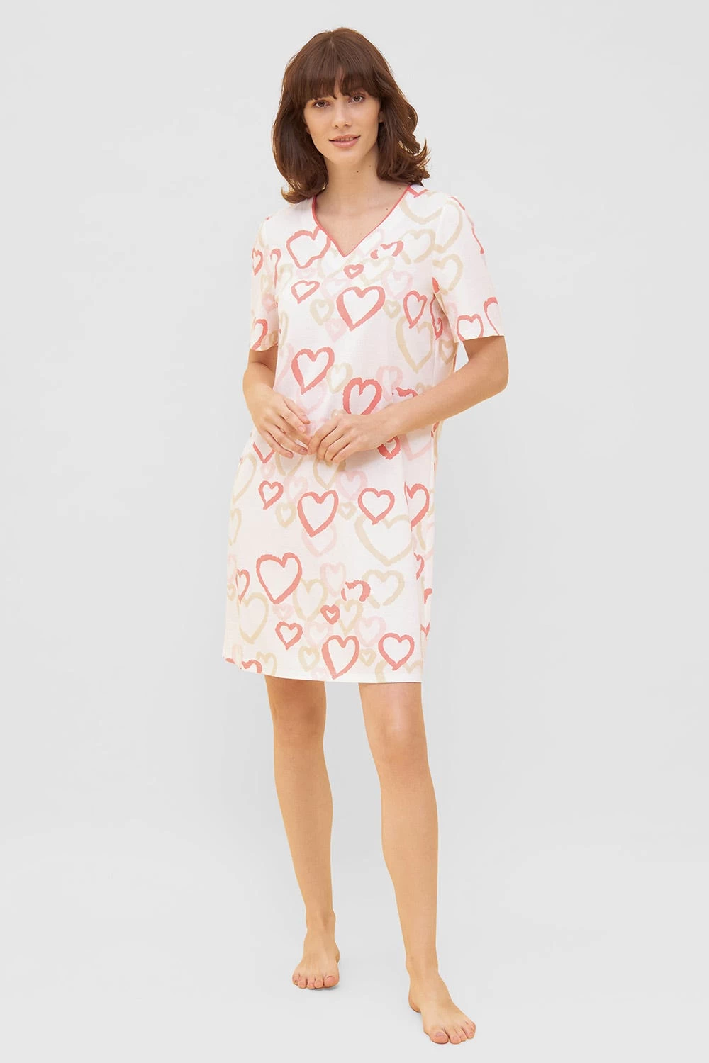 Nachthemd im romantischen Herzen-Druck mit kurzen Ärmeln und V-Ausschnitt.