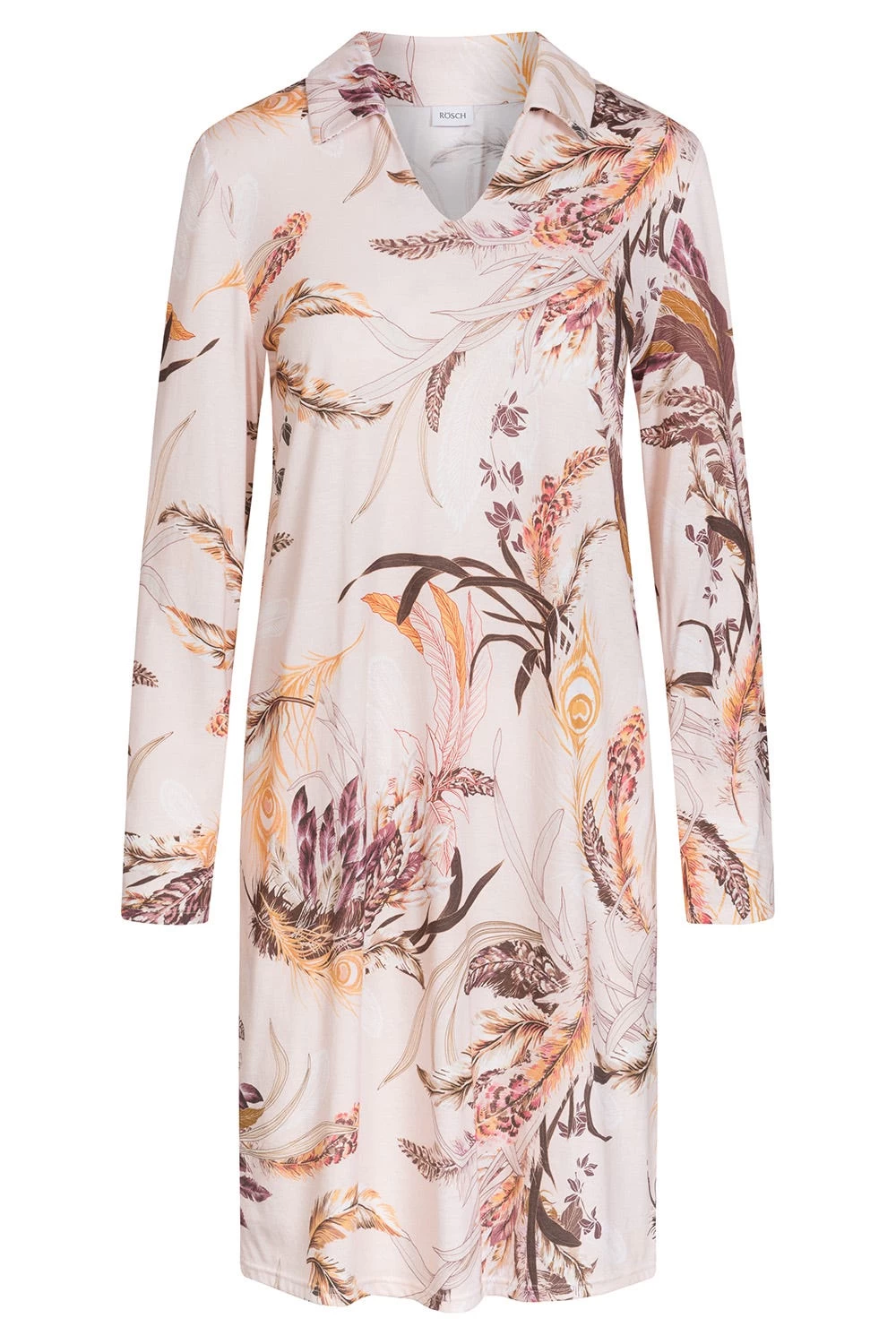 Nachthemd aus bedrucktem Jersey mit kleinem Schlitz in vorderer Mitte und Umlegekragen.