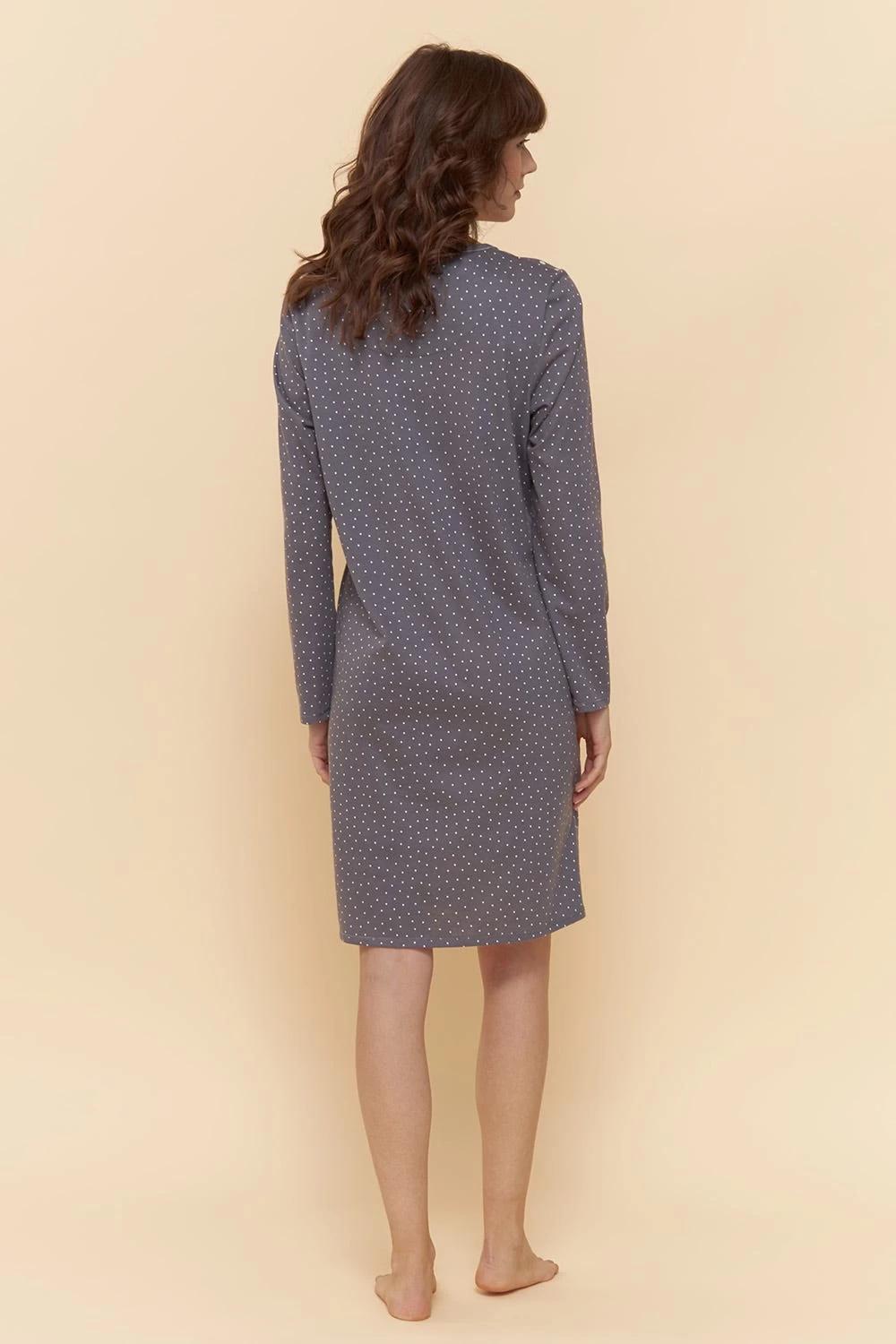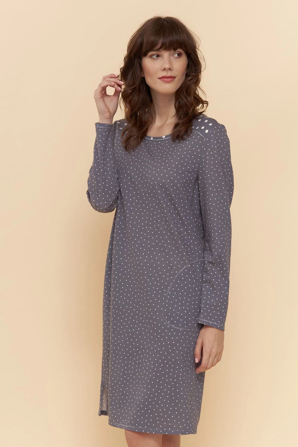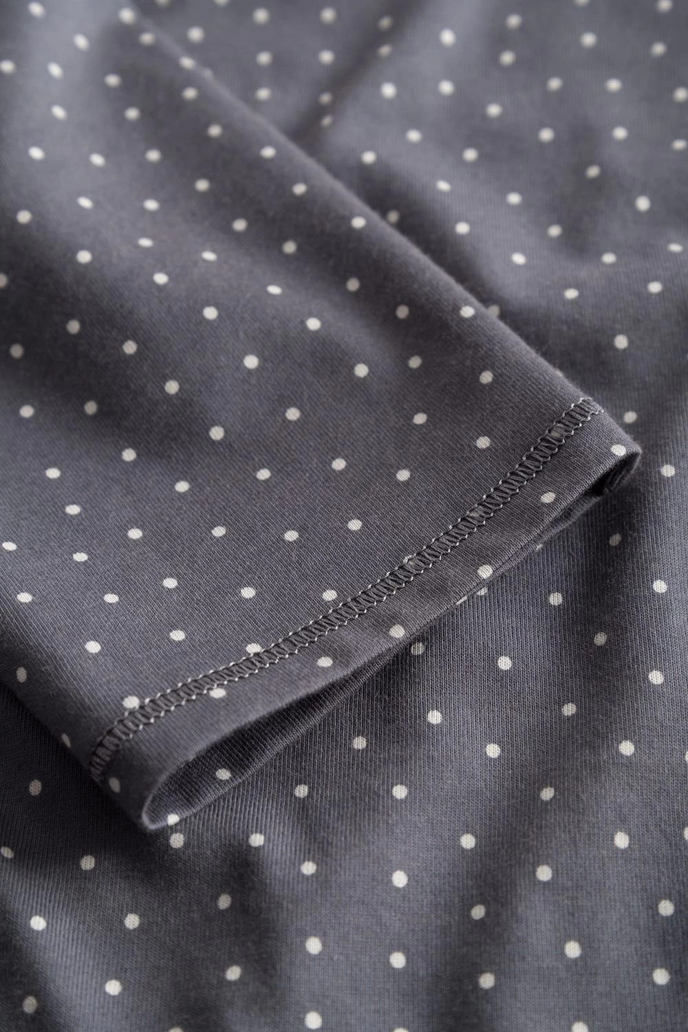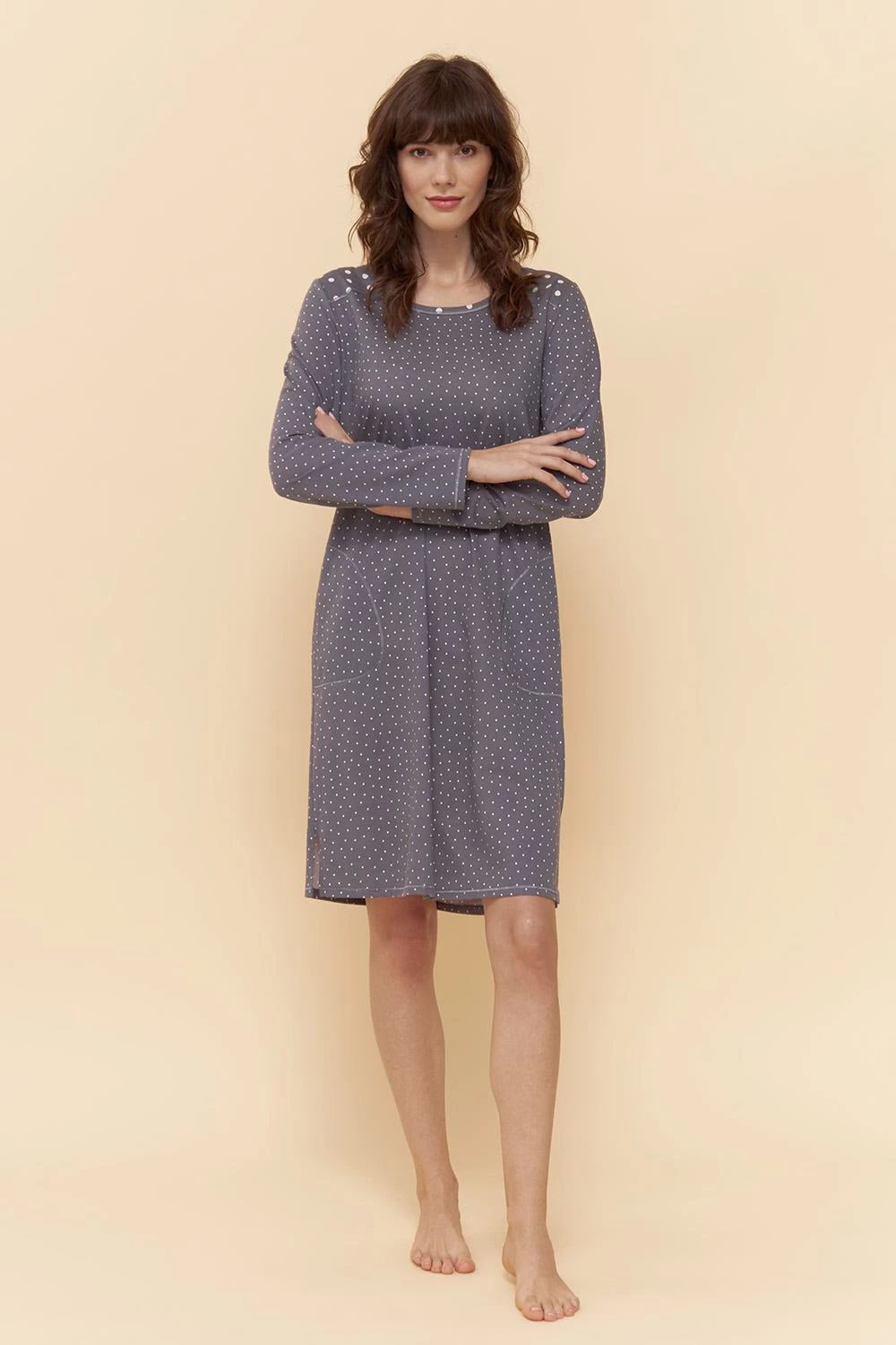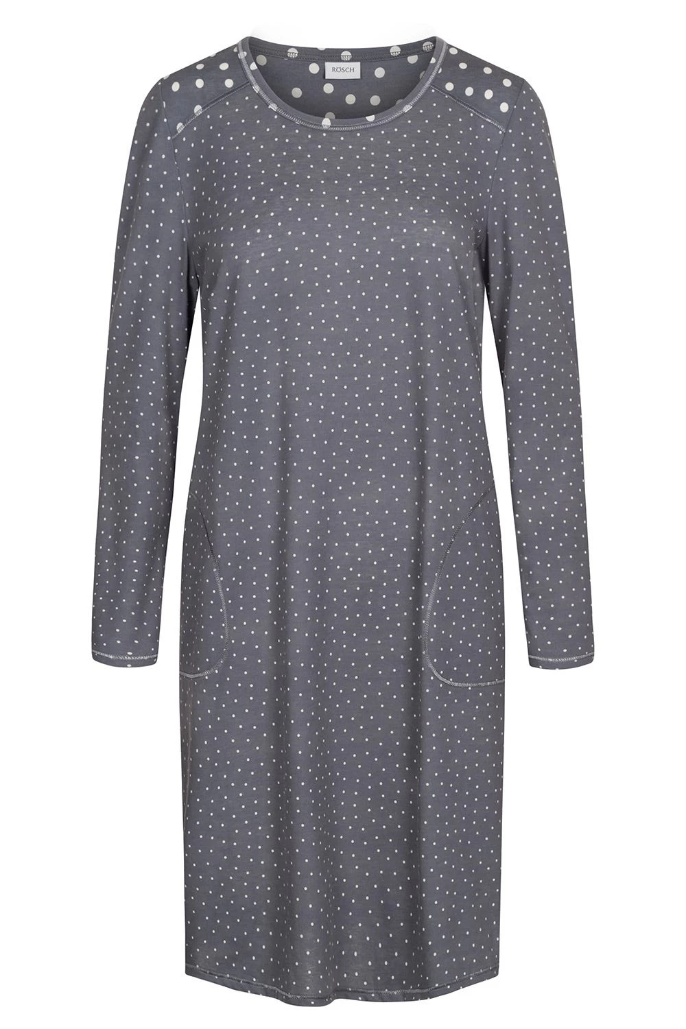 Nachthemd aus größeren und kleineren Tupfen im Mix. Das Spiel an der Schulterpasse mit den beiden Drucken sorgt für einen charmanten Look. Seitlich sind Taschen eingearbeitet. Die passenden Ziernähte sind perfekt abgestimmt.