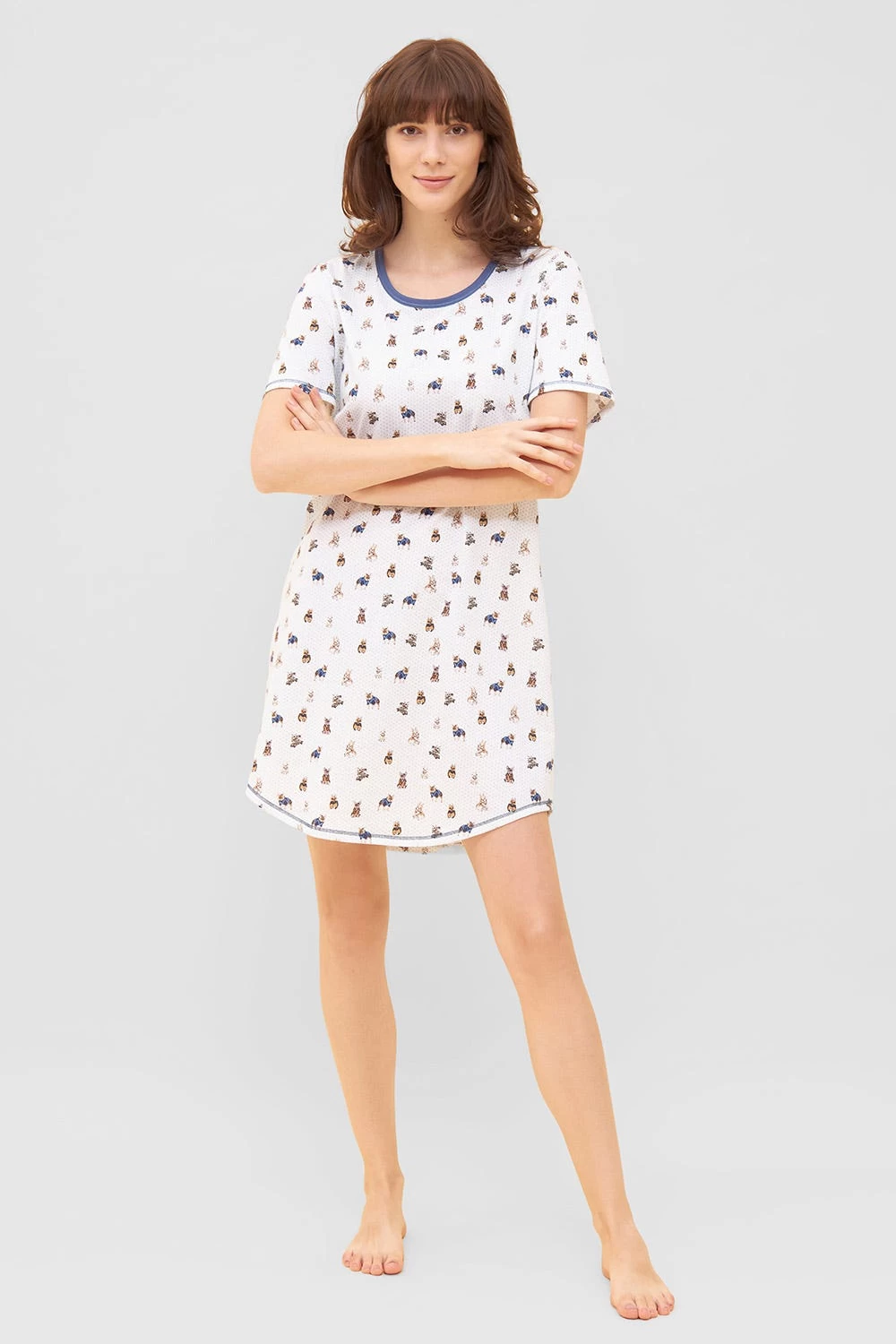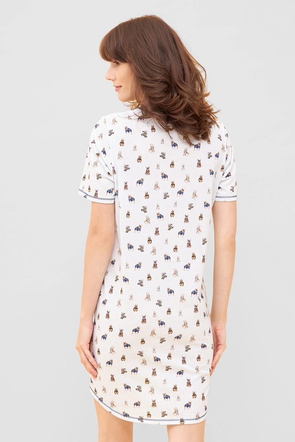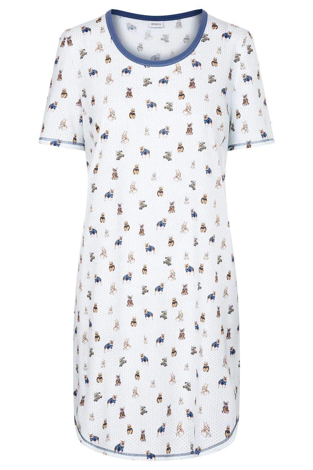 Nachthemd mit Rundhals im niedlichen Hunde-Druck. Die Ziernähte und der seitlich gerundete Saum vollenden den verspielten Look.