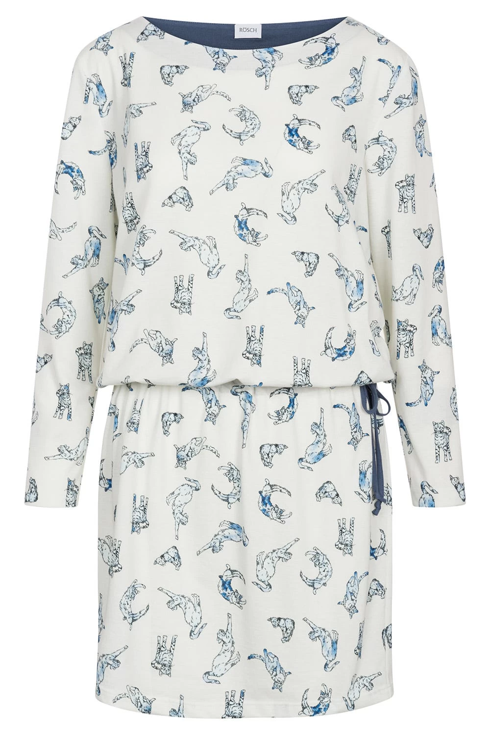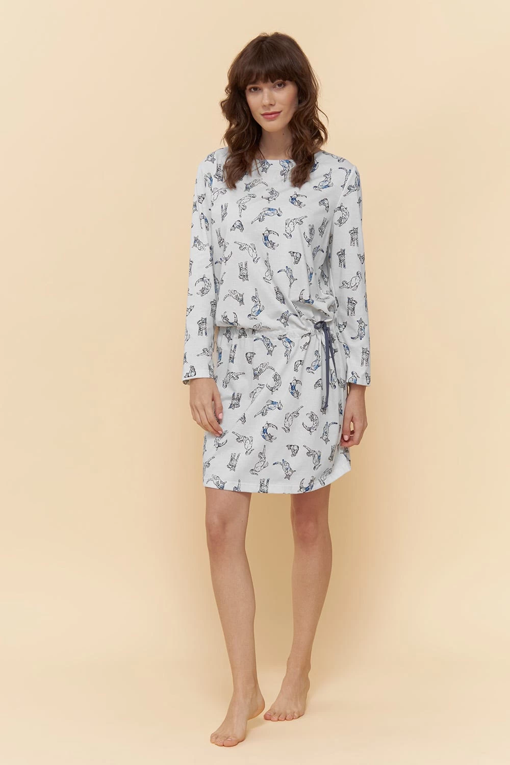 Nachthemd in lässiger Schnittführung mit U-Boot-Ausschnitt und einem Durchzugband etwas unterhalb der Taille. Das Modell kann damit auch geschoppt getragen werden.