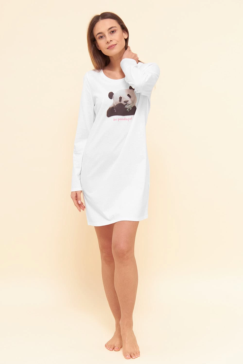 Langärmeliges Nachthemd mit Rundhals und Motiv-Druck.