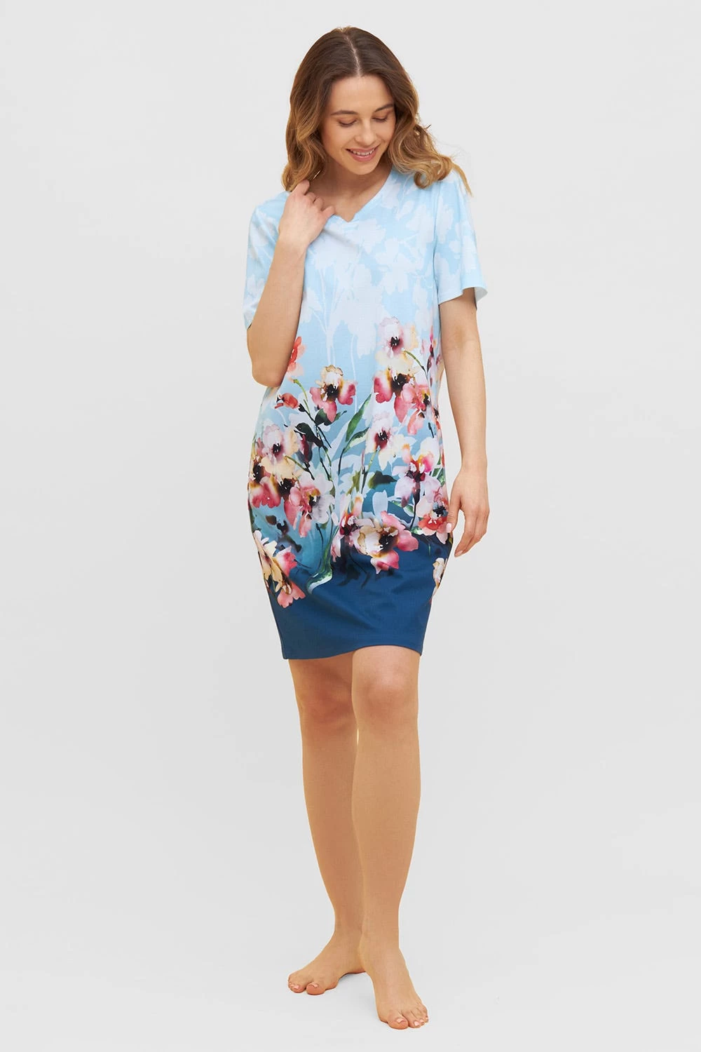 Nachthemd im schlichten Blumen-Druck mit platziertem, floralem Druck. Das Kleid ist aus angenehmem Single Jersey und in leichter A-Linie geschnitten.