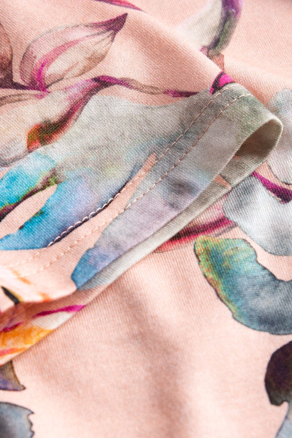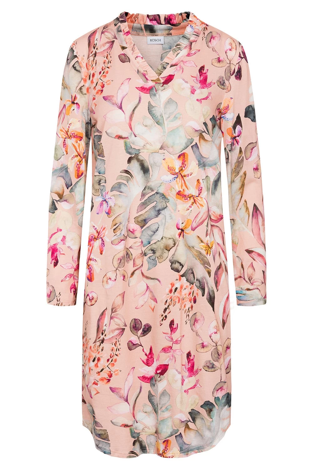 Nachthemd aus bedrucktem Jersey mit neuer Kragenlösung. Der leicht eingefasste Kragen schmeichelt am Hals und liegt formschön an. Der Saum des Modells ist leicht gerundet.