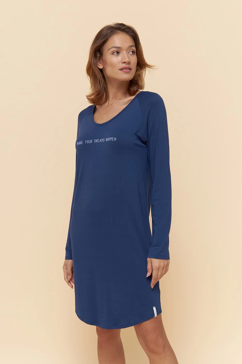 Nachthemd mit Raglanärmeln, V-Ausschnitt und Schriftzug.