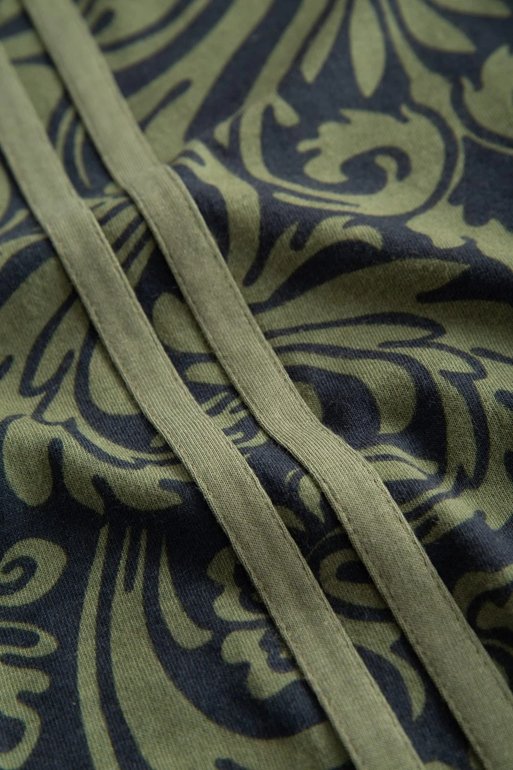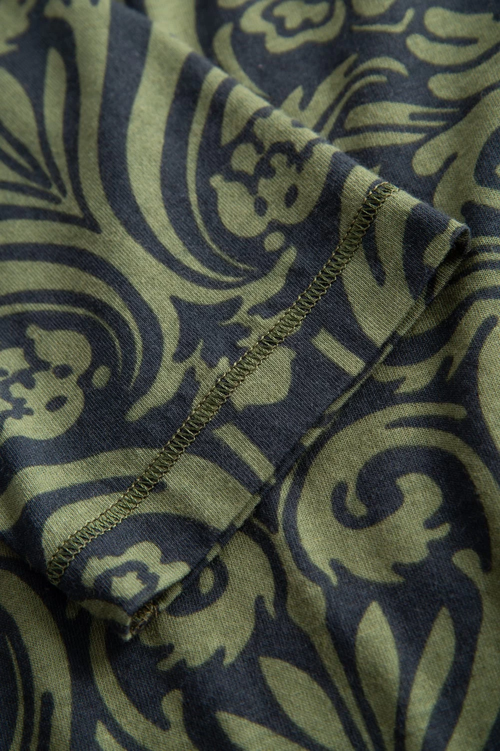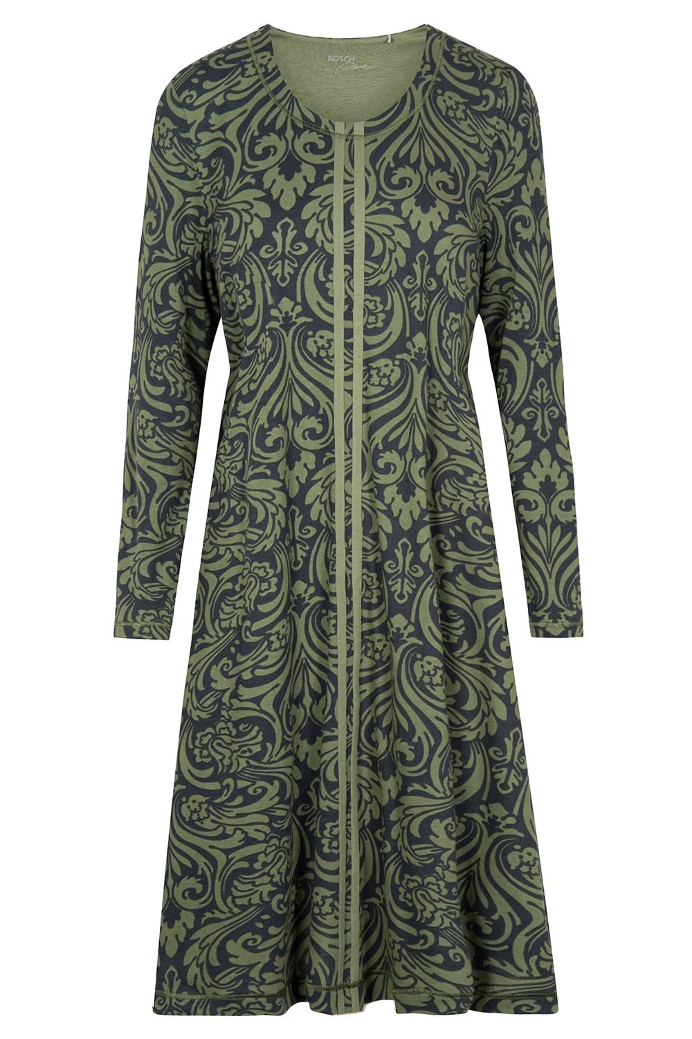 Bedrucktes Nachtkleid mit leicht aufgedrehtem Saum. Der Rundhals ist mit kleiner Paspel verarbeitet. In vorderer Mitte sind zwei schmale Bänder aufgenäht, die für eine charmante Linie sorgen.