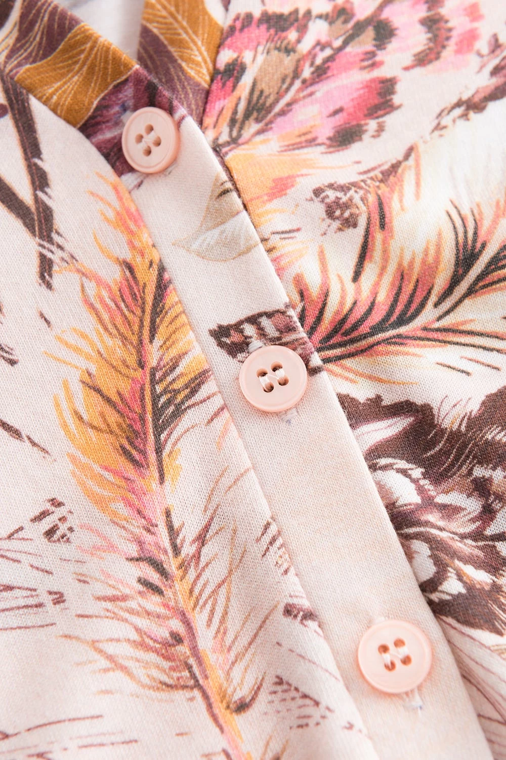 Nachtkleid aus bedrucktem Jersey mit kleiner Knopfleiste und Auslegekragen. Schlitze am Saum sorgen für Komfort.