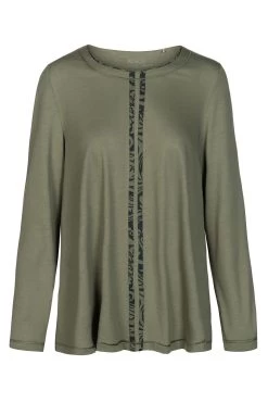 Pyjamashirt Mit Aufgenähten Bändern In Druck Grün Mix & Match Baumwolle/Modal Große Größen Bis 54