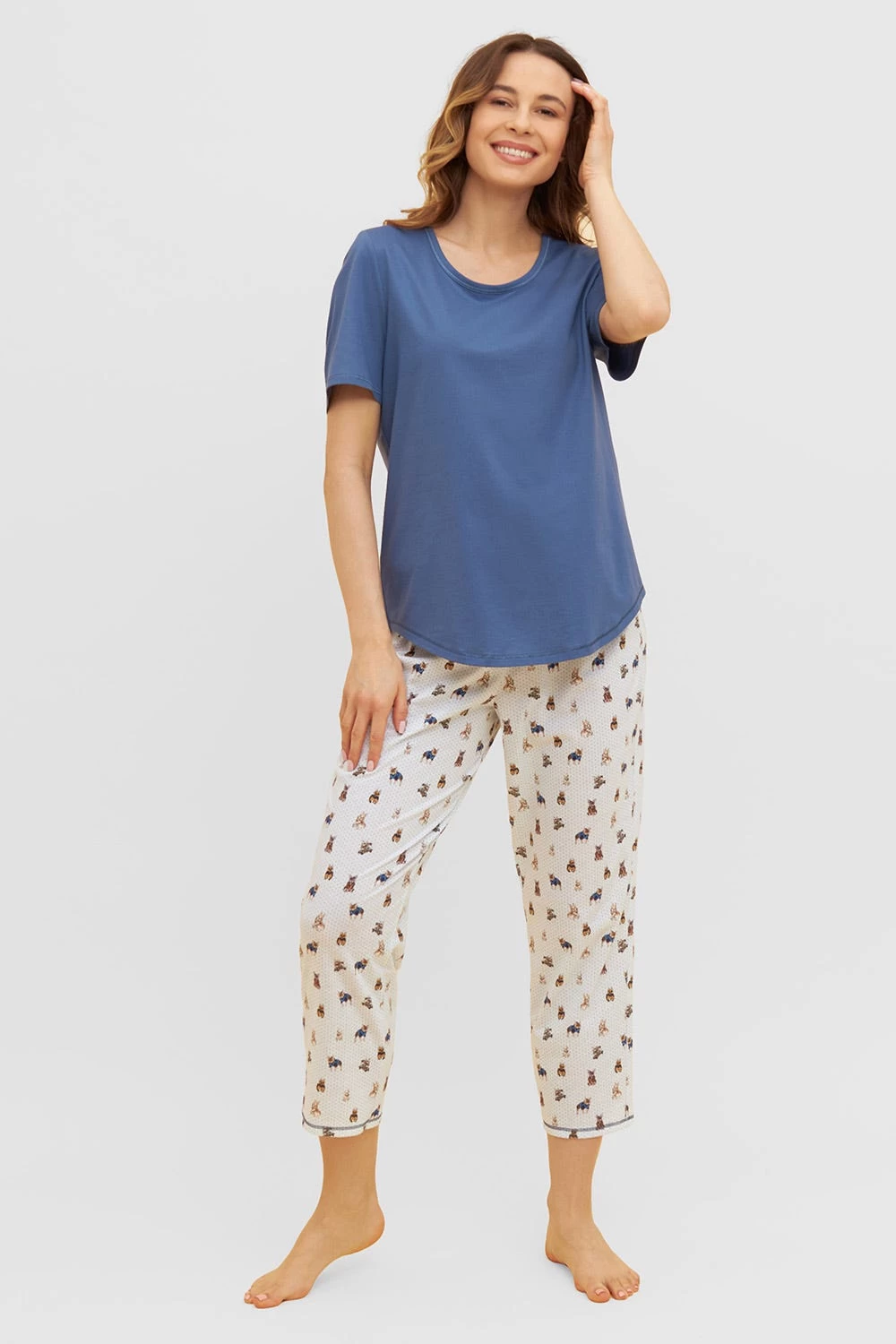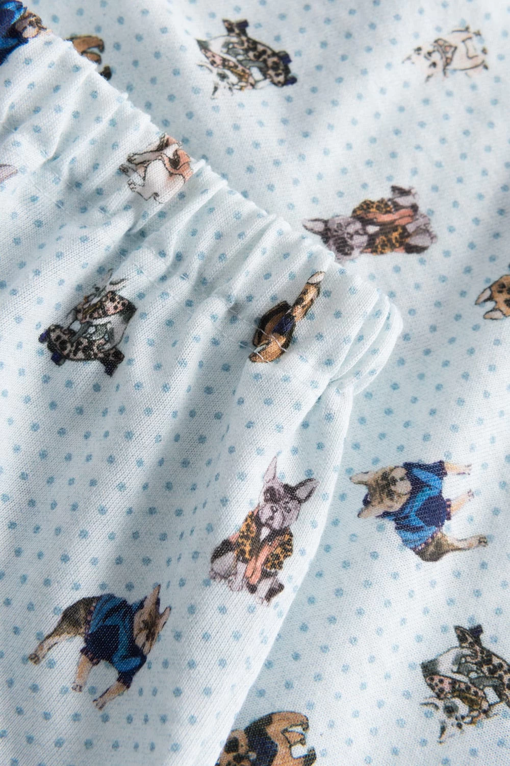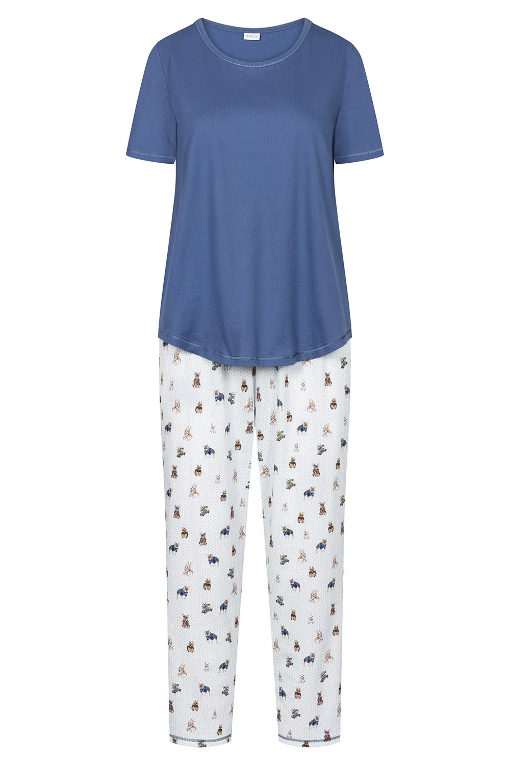 Pyjama mit T-Shirt in Uni und Hose im niedlichen Hunde-Druck. Die Ziernähte und der seitlich gerundete Saum des Shirts vollenden den verspielten Look.