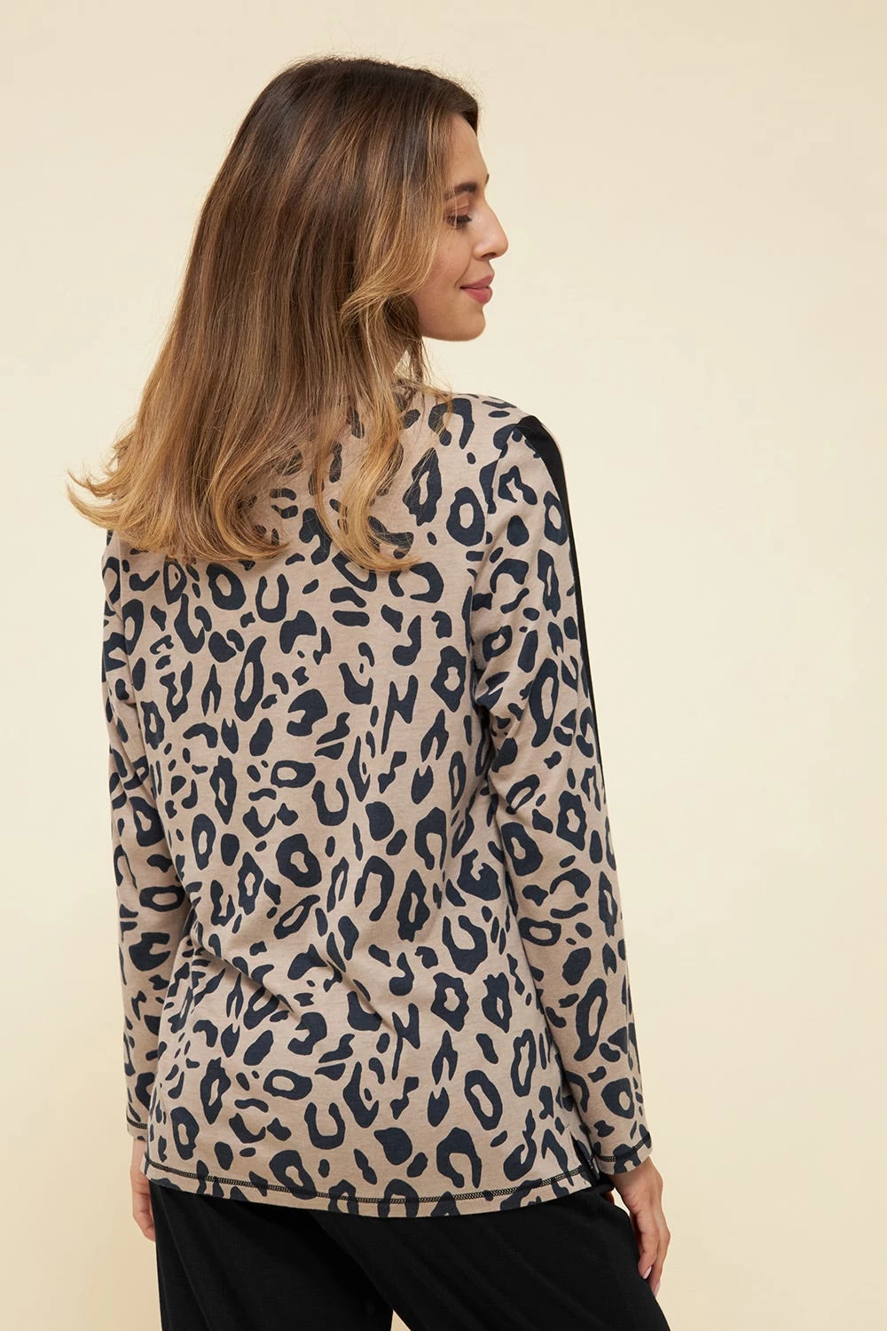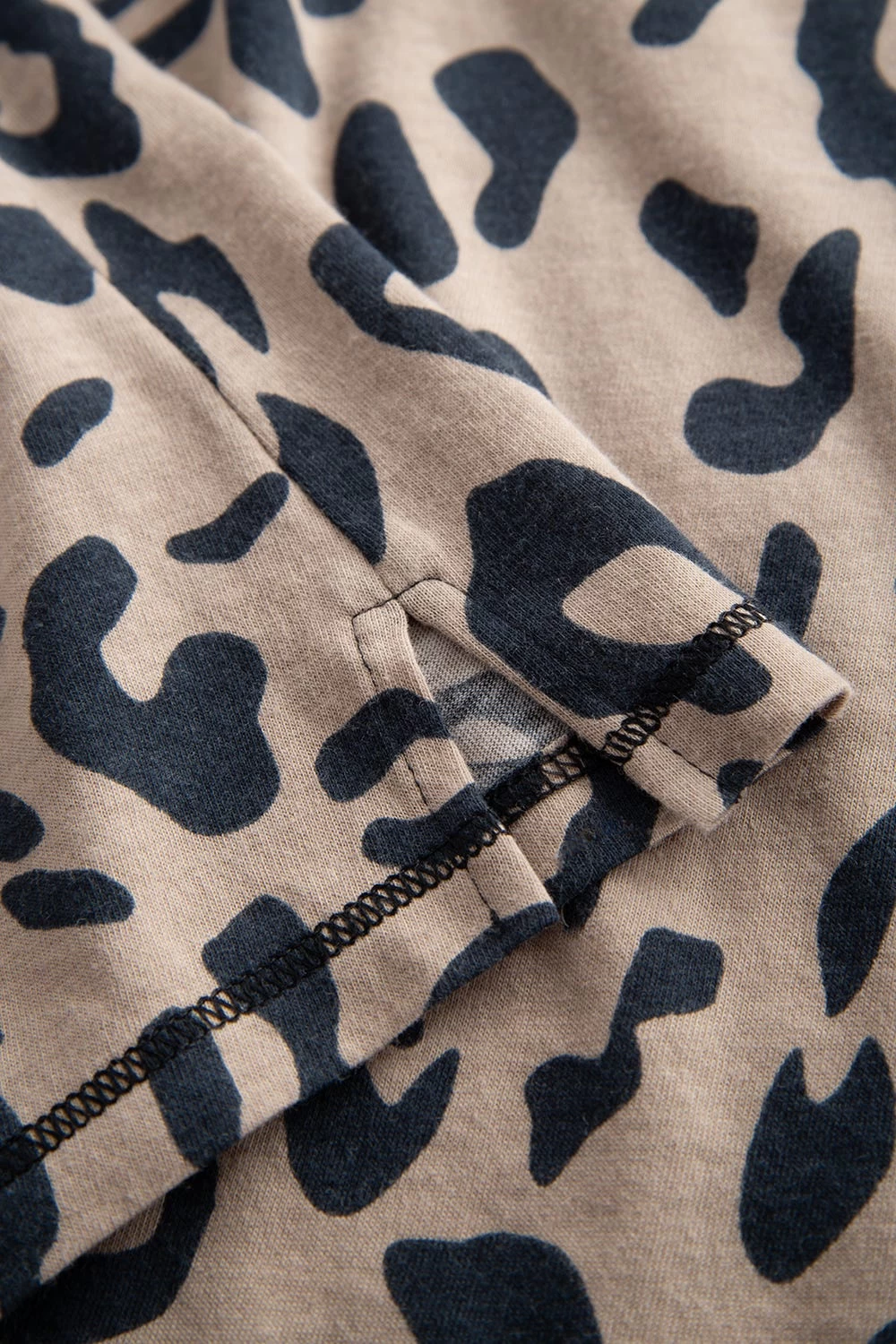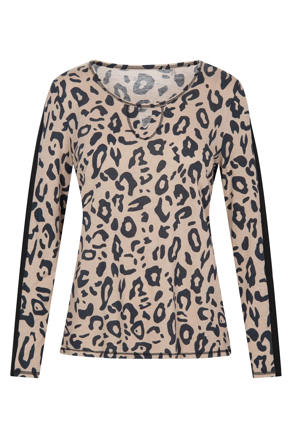 Bedrucktes Shirt mit kleinem Schlitz am Halsausschnitt. Seitlich gibt es kleine Schlitze und an den Ärmeln ist ein Einsatz in Kontrast eingenäht.
