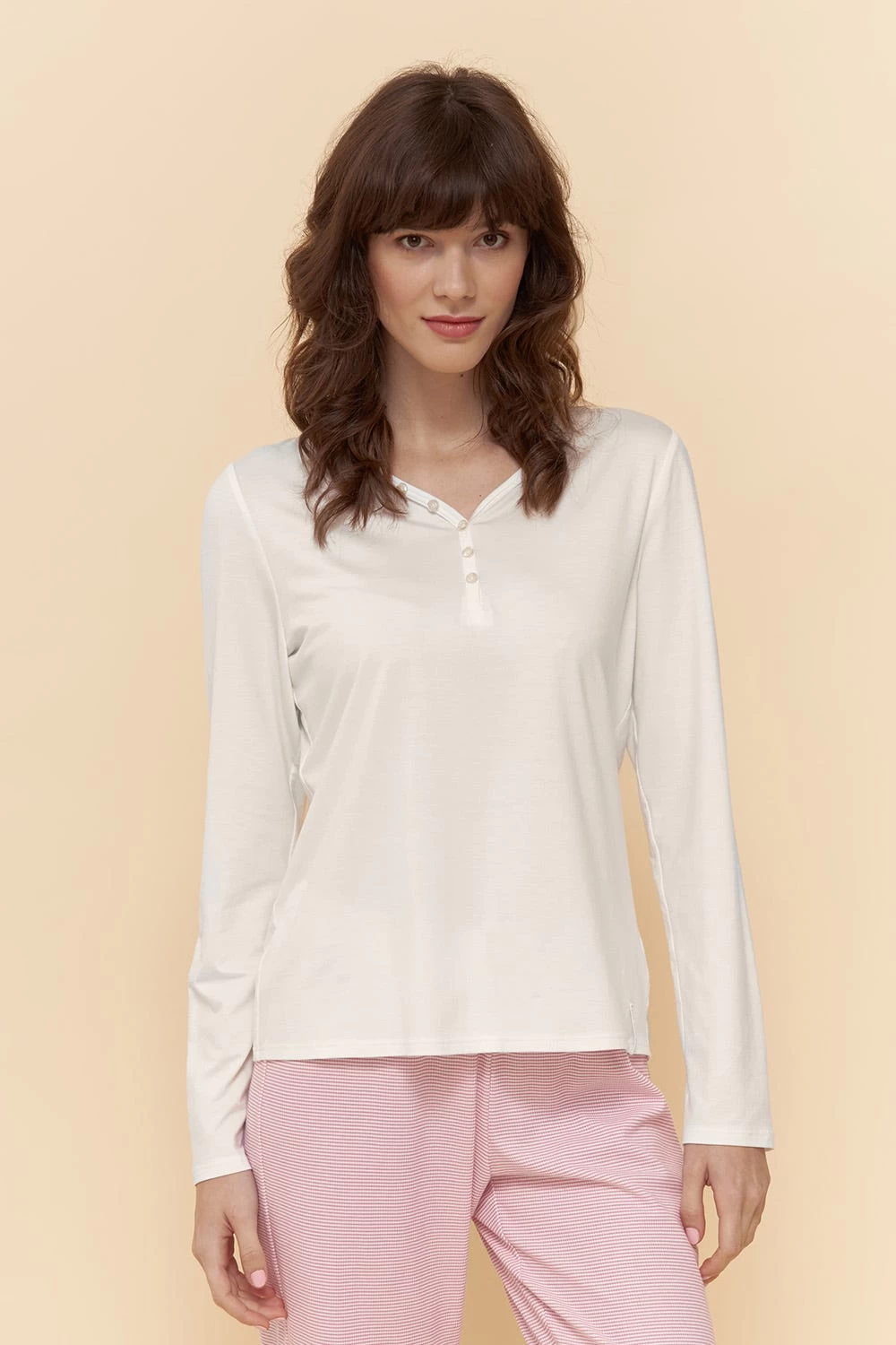 Langarm-Shirt im geradem Schnitt mit Knopfleiste.