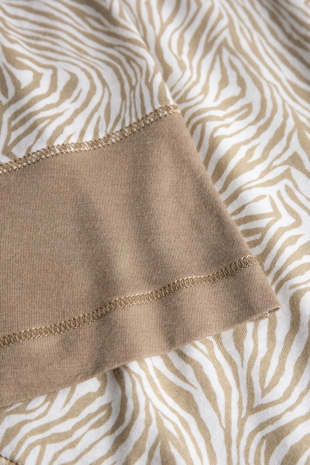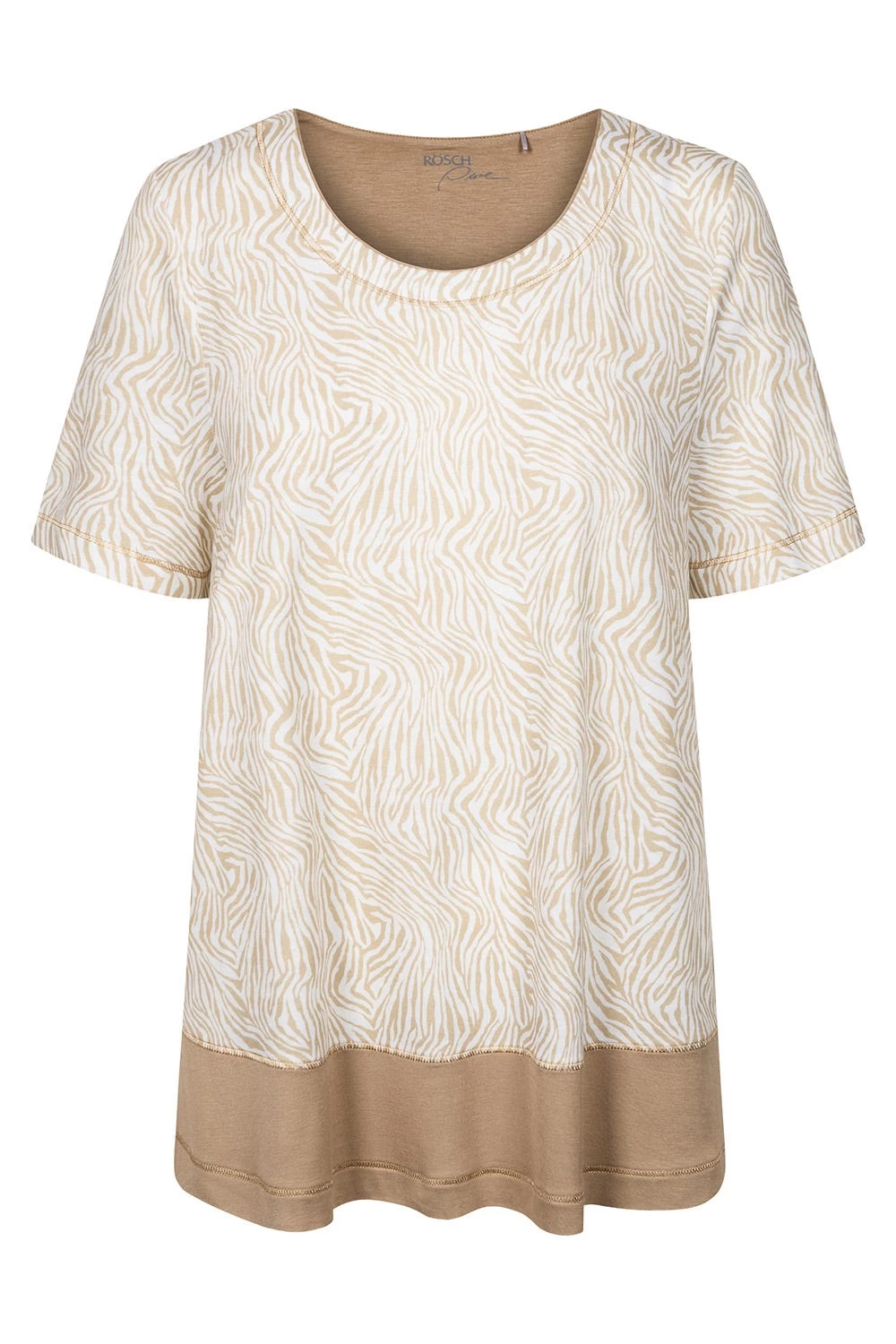 Shirt mit mehr komfortabler Saumweite und Colorblocking-Optik aus Zebra-Druck und passendem Unifarbenen Stoff. Besondere Details sind das Halsloch mit Paspel in Uni und die Ziernähte in passender Farbe.