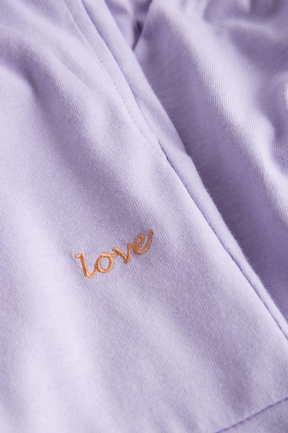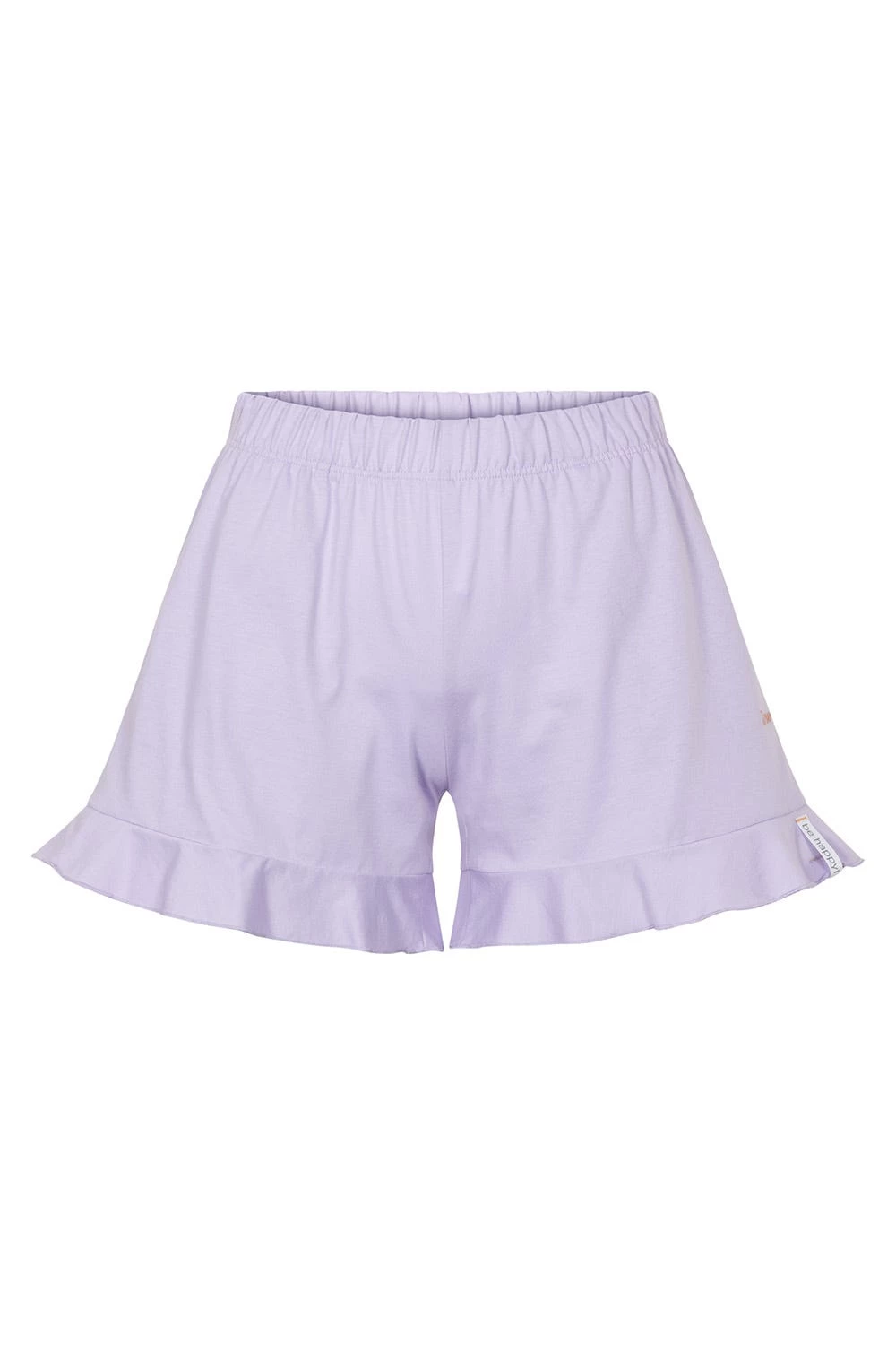 Das Design aus Viskose/Elasthan wird mit der kleinen Stickerei „summer“ in Szene gesetzt. Die Shorts besitzt eine entspannte Form und Volants mit französischem Saum.