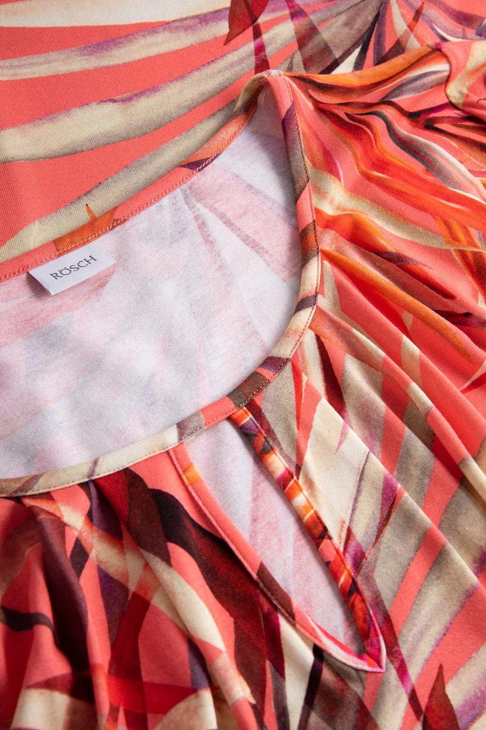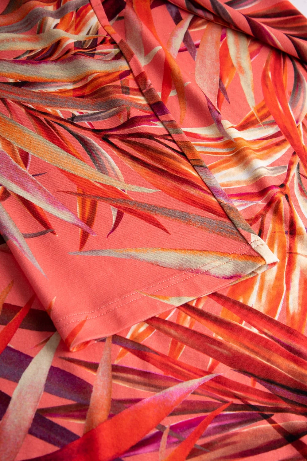 Kleid mit 3/4-Arm im ansprechenden Blätter-Druck. Das Strandkleid hat einen Rundhals sowie einen kleinen Schlitz am Ausschnitt. Am Saum hat das Modell Seitennahtschlitze für mehr Bewegungsfreiheit.