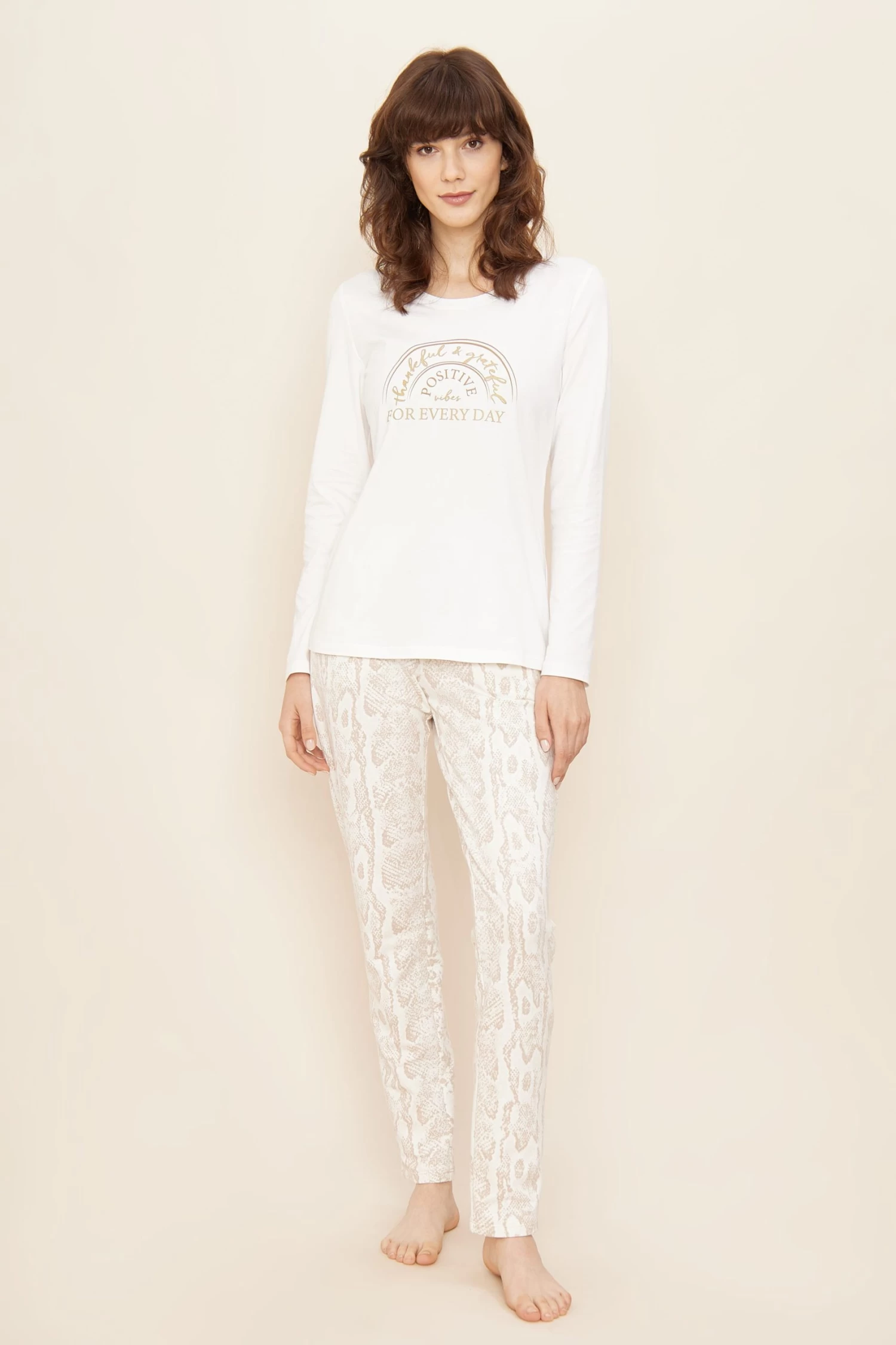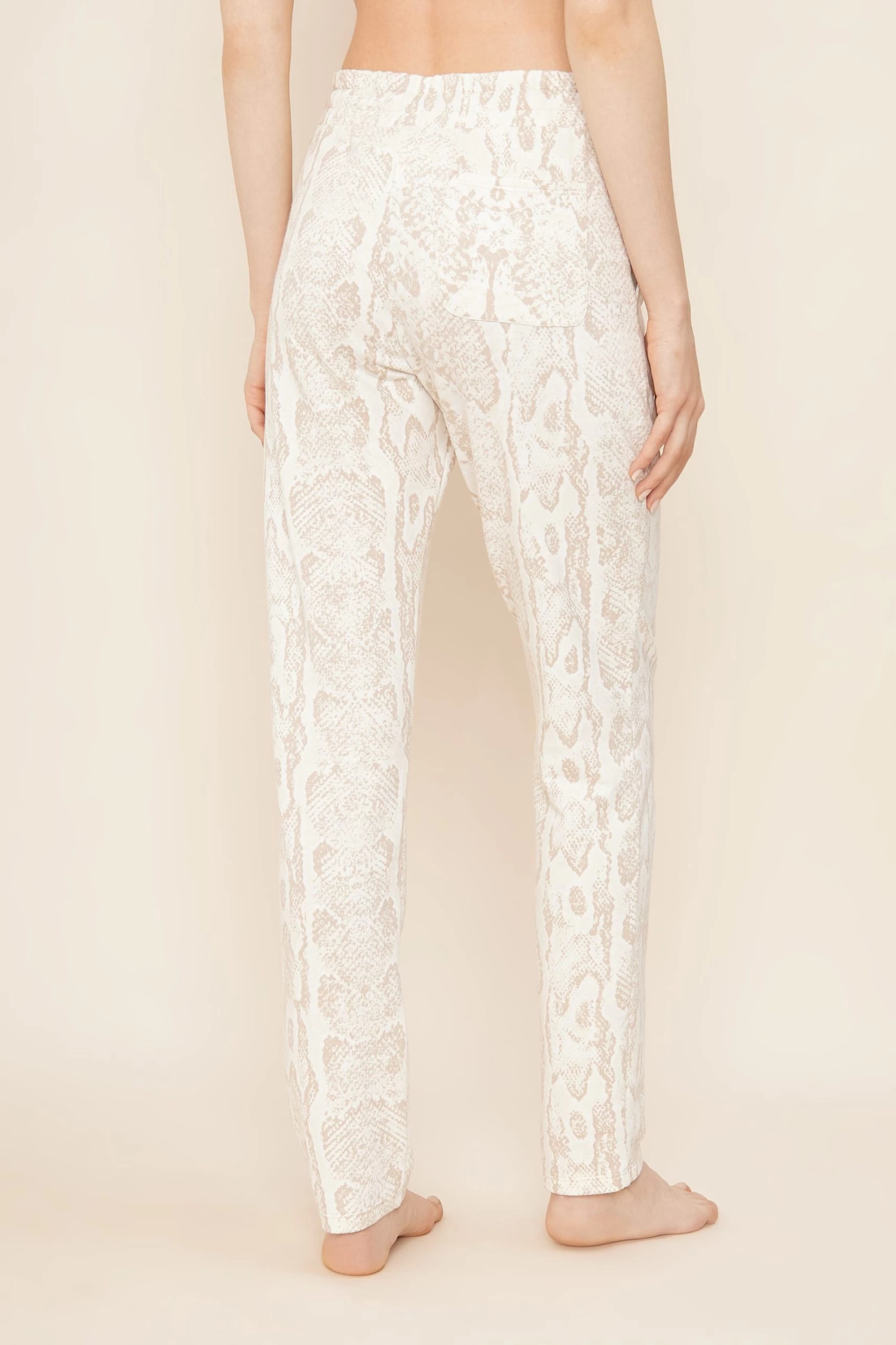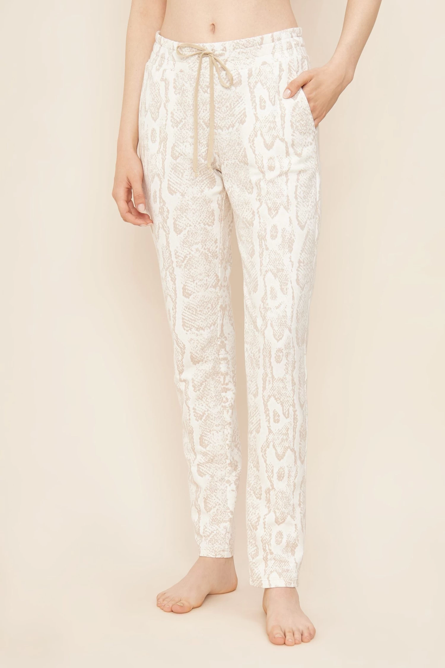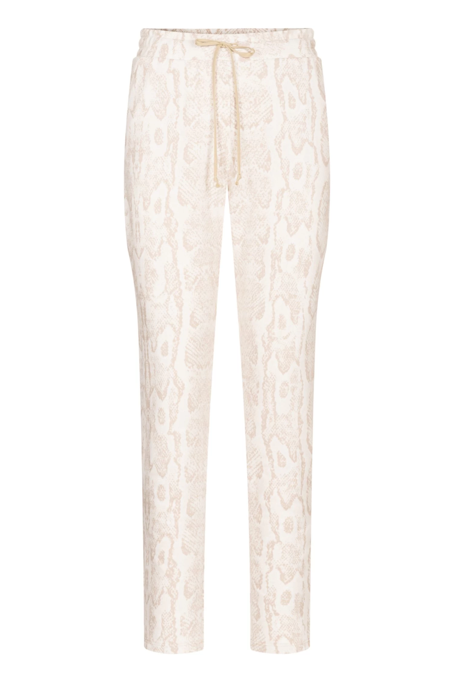 Lässige, schmale Hose aus bedruckter Sweatware im dezenten, hellbeigen Snake-Druck. Komfortable Seitentaschen und eine Gesäßtasche runden den lässigen Look auf. Der breite Gummizug an der Taille und das Bindeband unterstreichen die Passform.