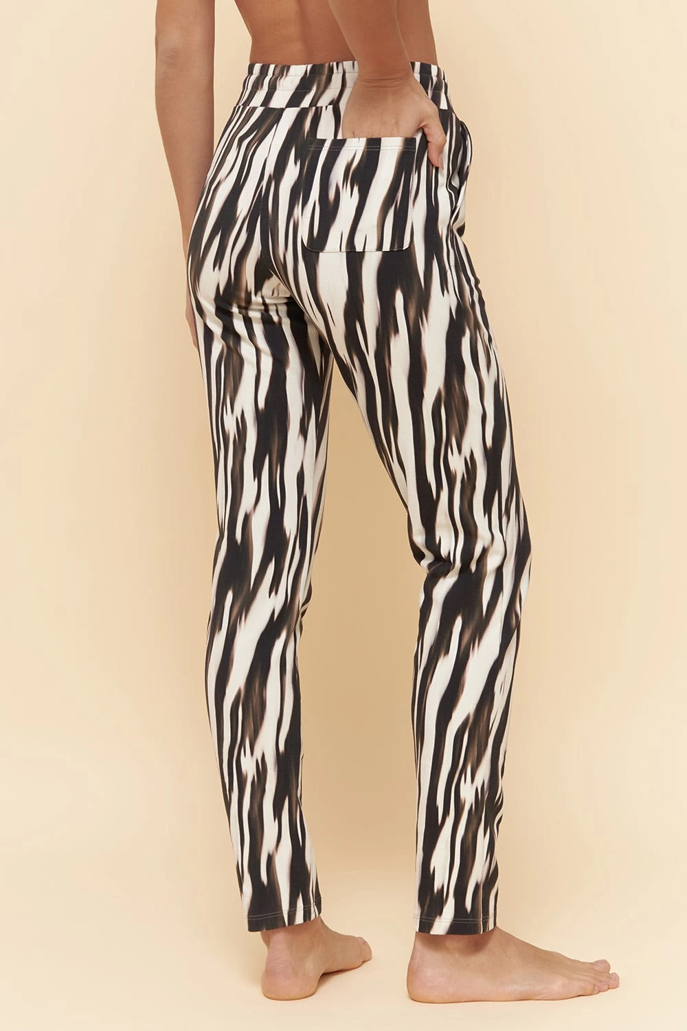 Schlanke Jogging Hose aus bedruckter Sweatware im ansprechenden Batik-Stil. Seitliche hat die Hose Eingrifftaschen und an der rechten Poseite befindet sich eine aufgesetzte Tasche. Der breite Bund sorgt für Bequemlichkeit.