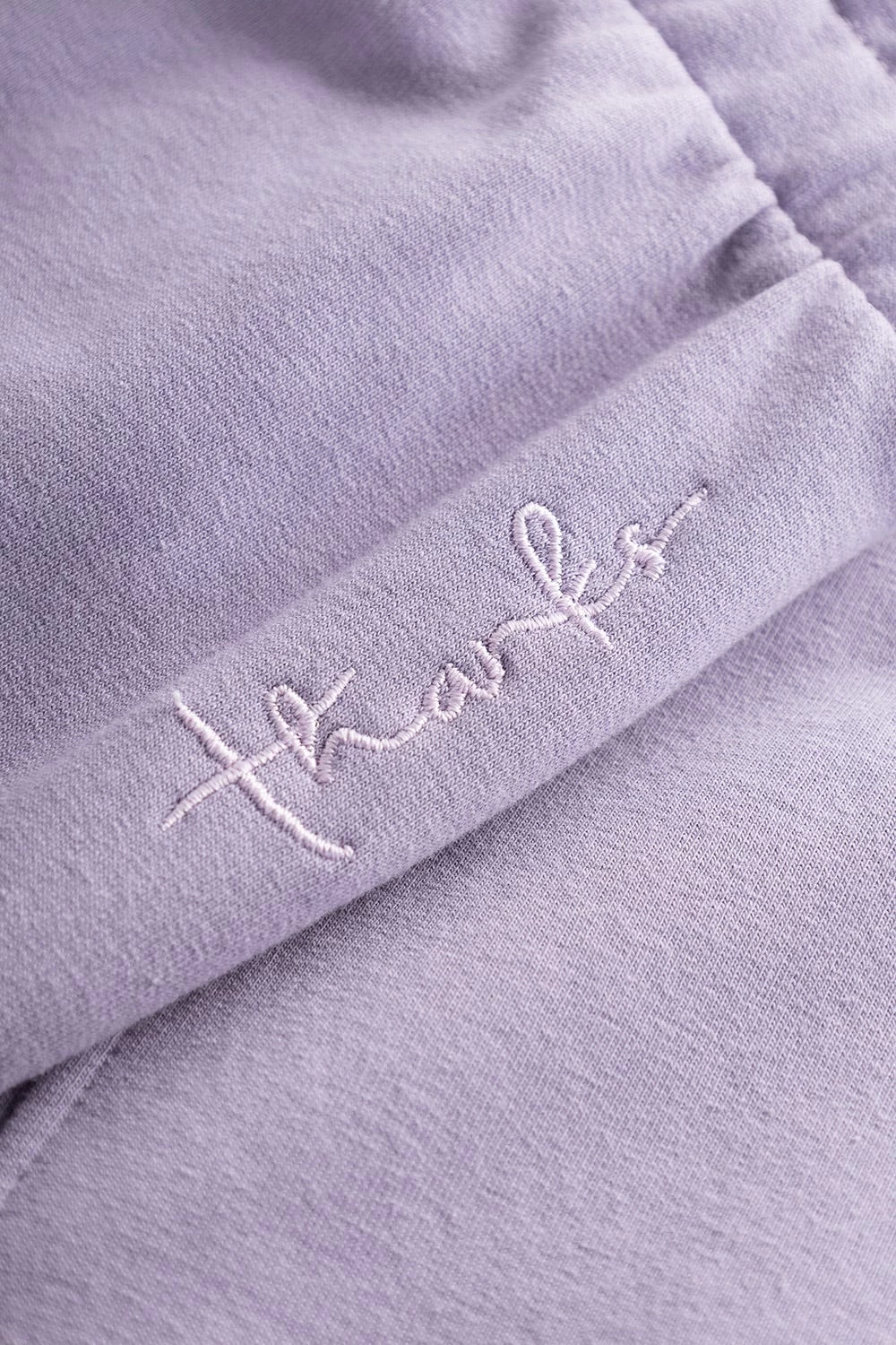 Lässige Jogginghose mit seitlichen Taschen und Naht in vorderer Mitte Naht aus weicher Sweatware. Die Hose hat eine kleine Stickerei seitlich an der Hüfte am Rückteil. Der Hosenbund ist mit weichem Gummi und Kordeldurchzug komfortabel gearbeitet.