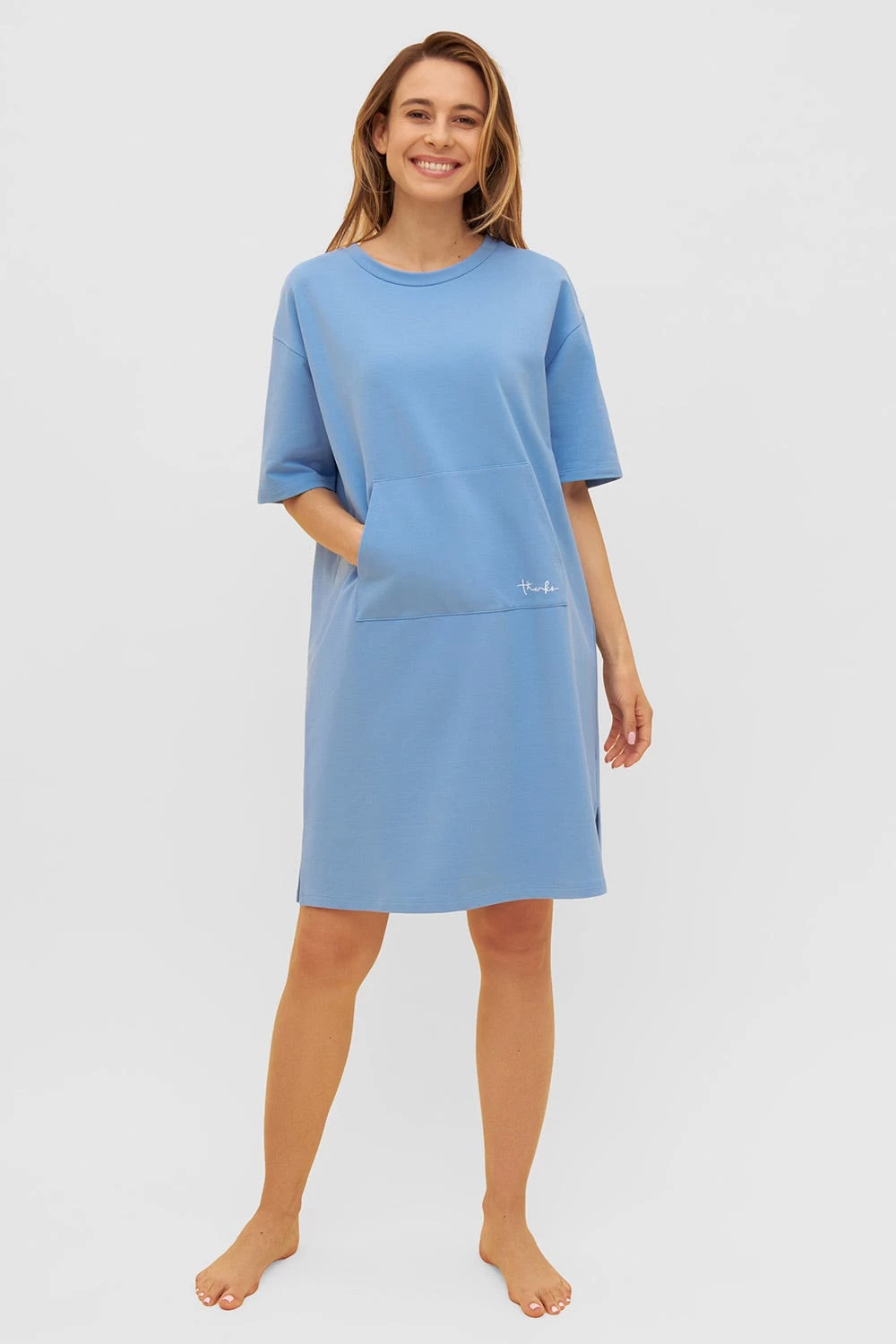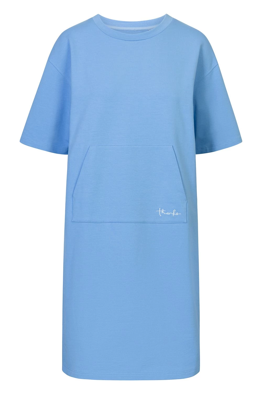 Sweatkleid aus weicher, komfortabler Sweatware. Der sportive Basic Kleid in lässiger Passform hat einen Rundhals, Seitenschlitze und eine kleine Logo-Stickerei auf der Känguru-Tasche und am Halbarm.