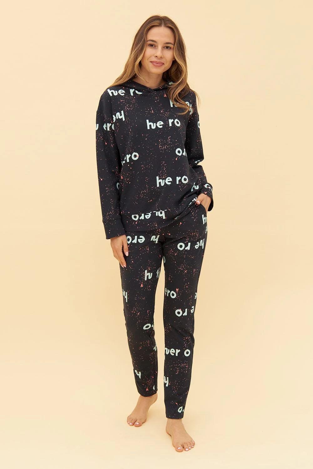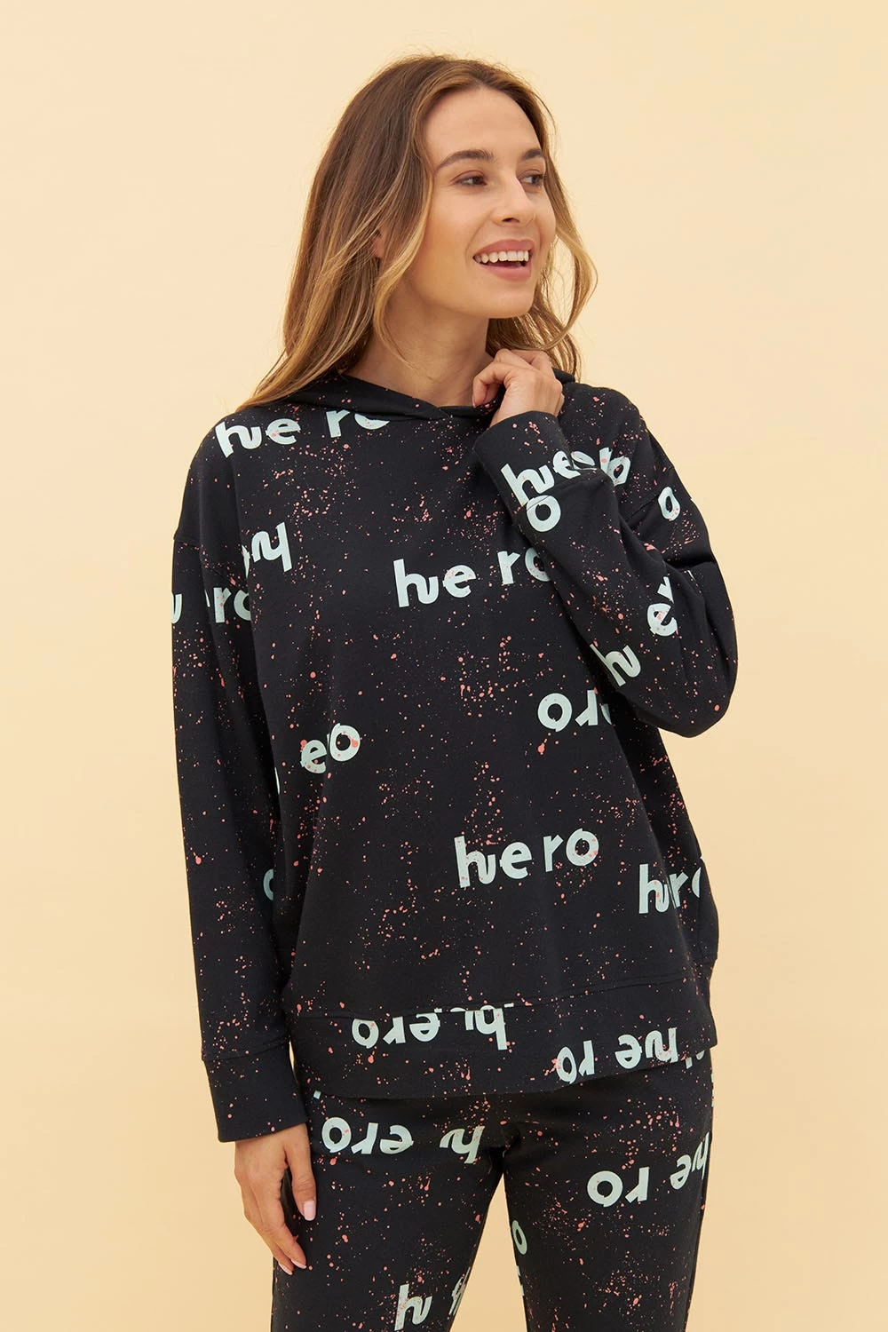 - Motivdruck „hero“ auf Farbspritzern