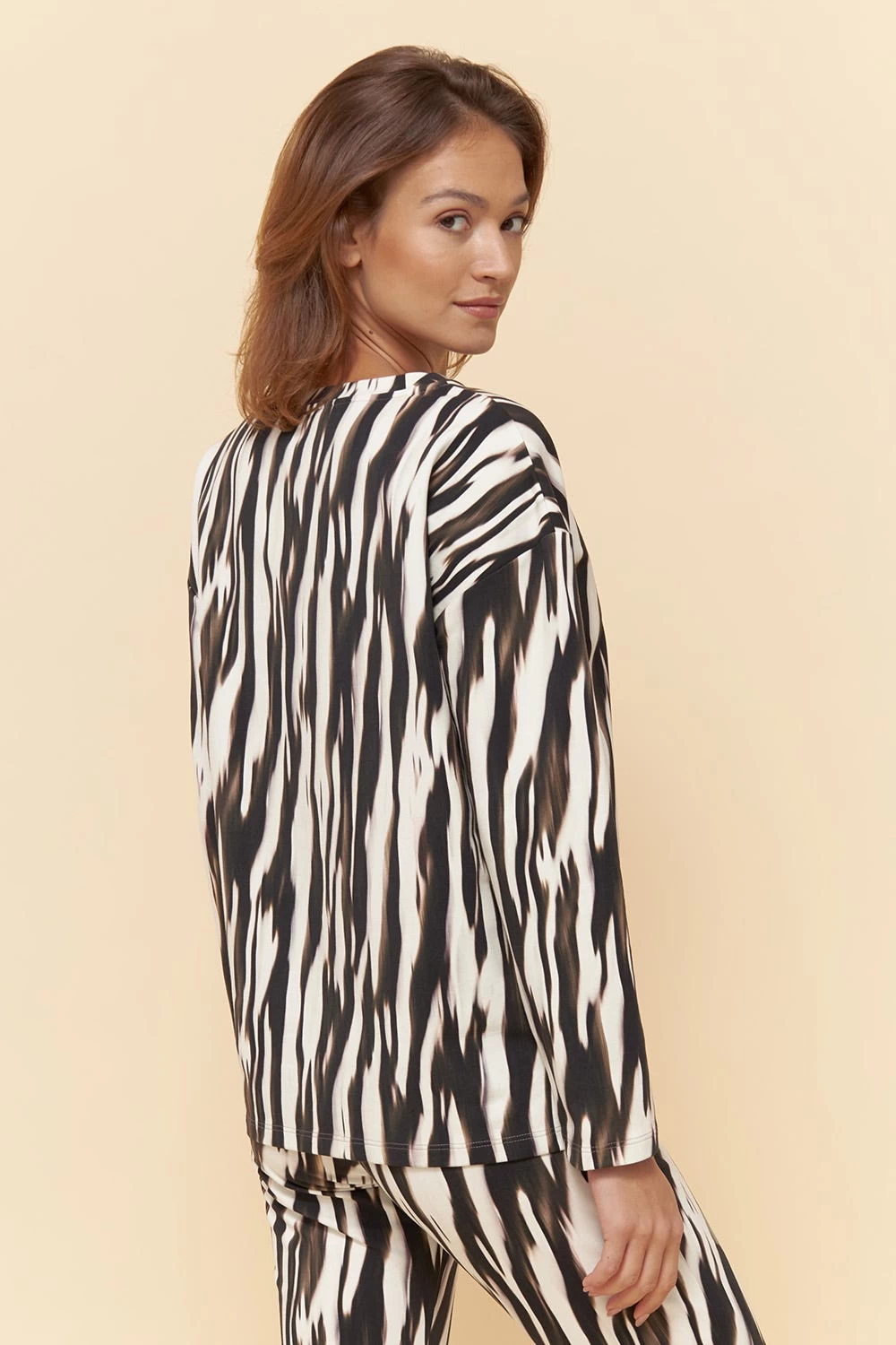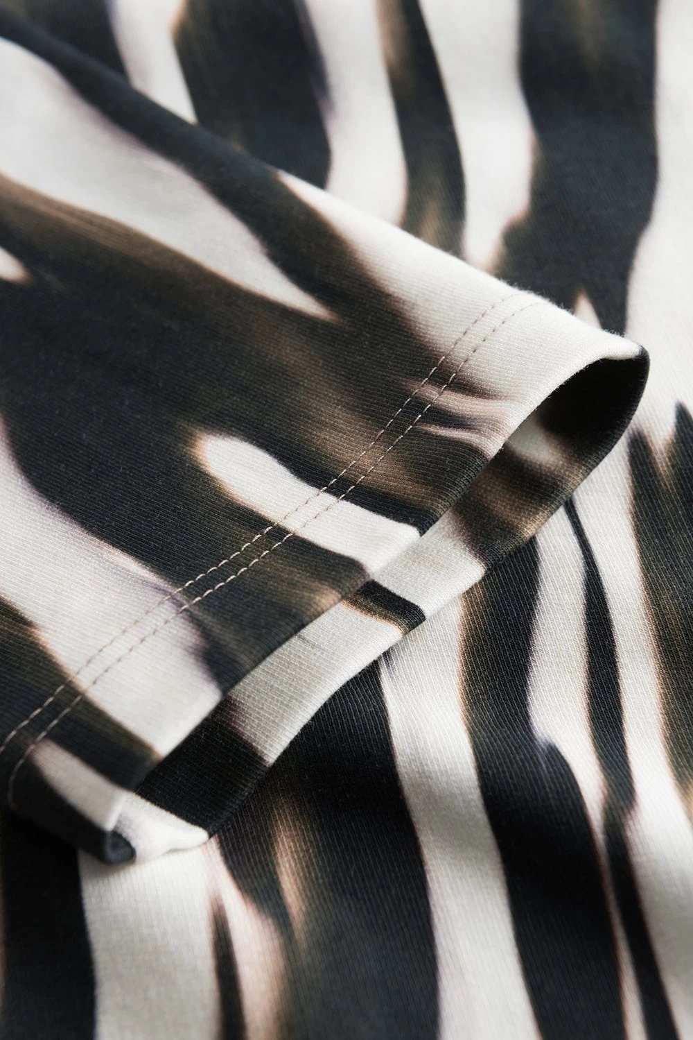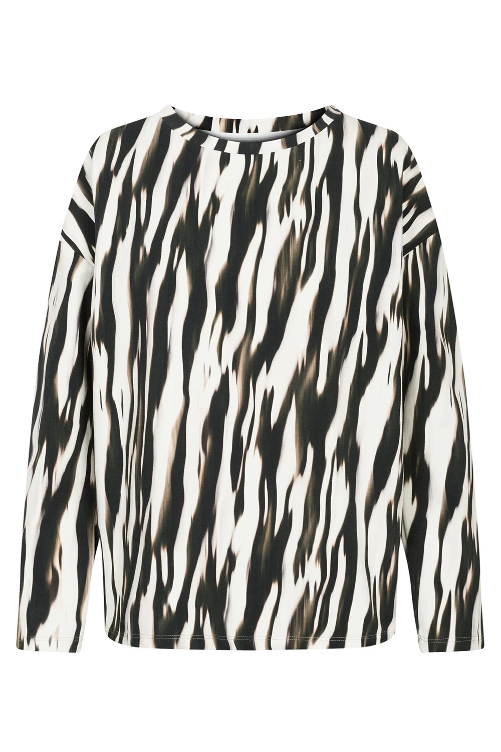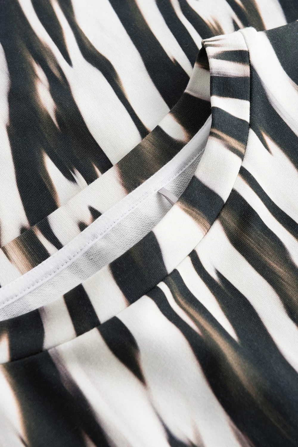 Sweatshirt bedruckt mit ansprechendem Druck im Zebra-Stil. Das Modell ist gerade geschnitten und hat seitlich kleine Schlitze am Saum.