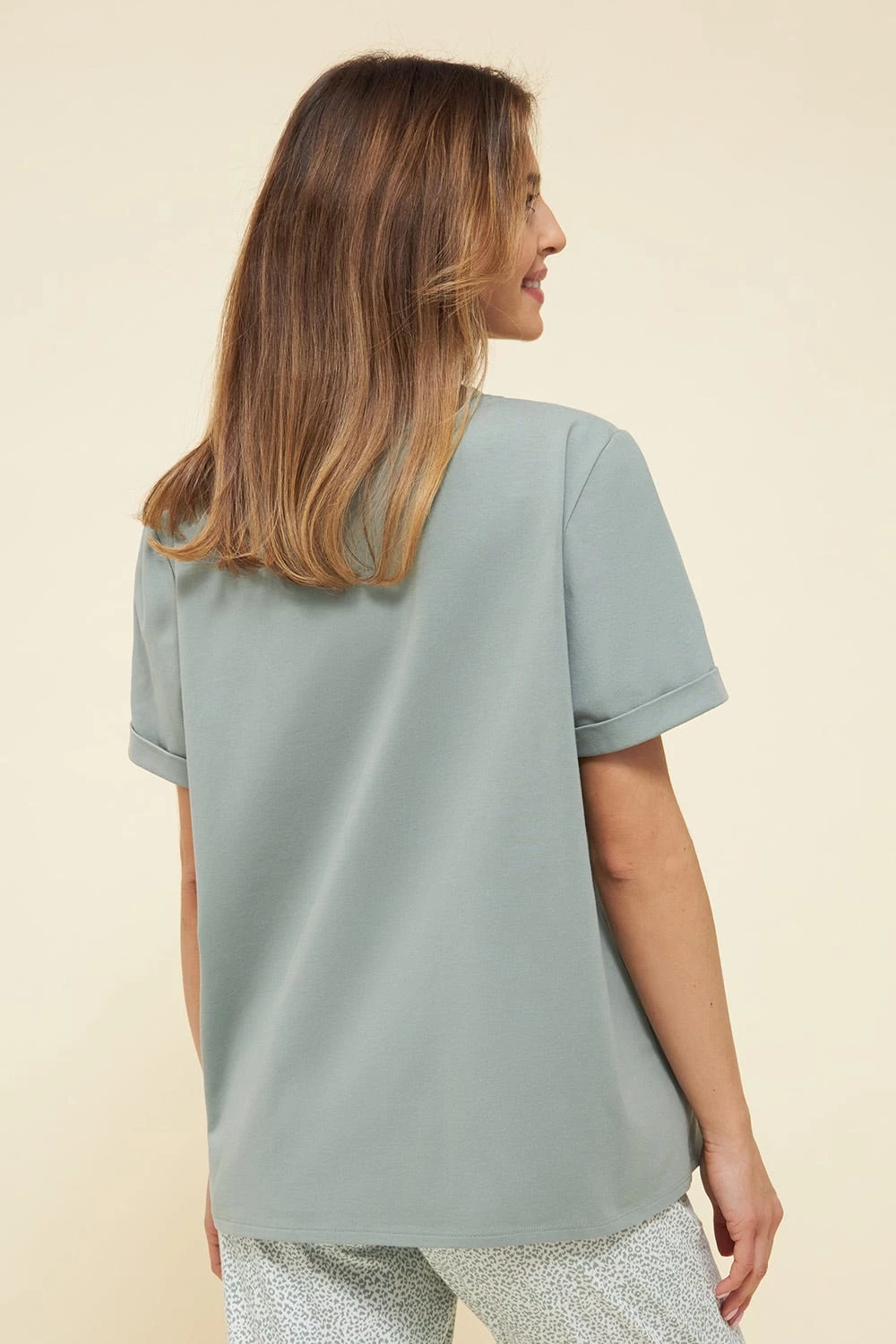 Das Design besteht aus Bio-Baumwolle. Das oversized T-Shirt besitzt Ärmel mit Aufschlag sowie einen modernen Rundhals.