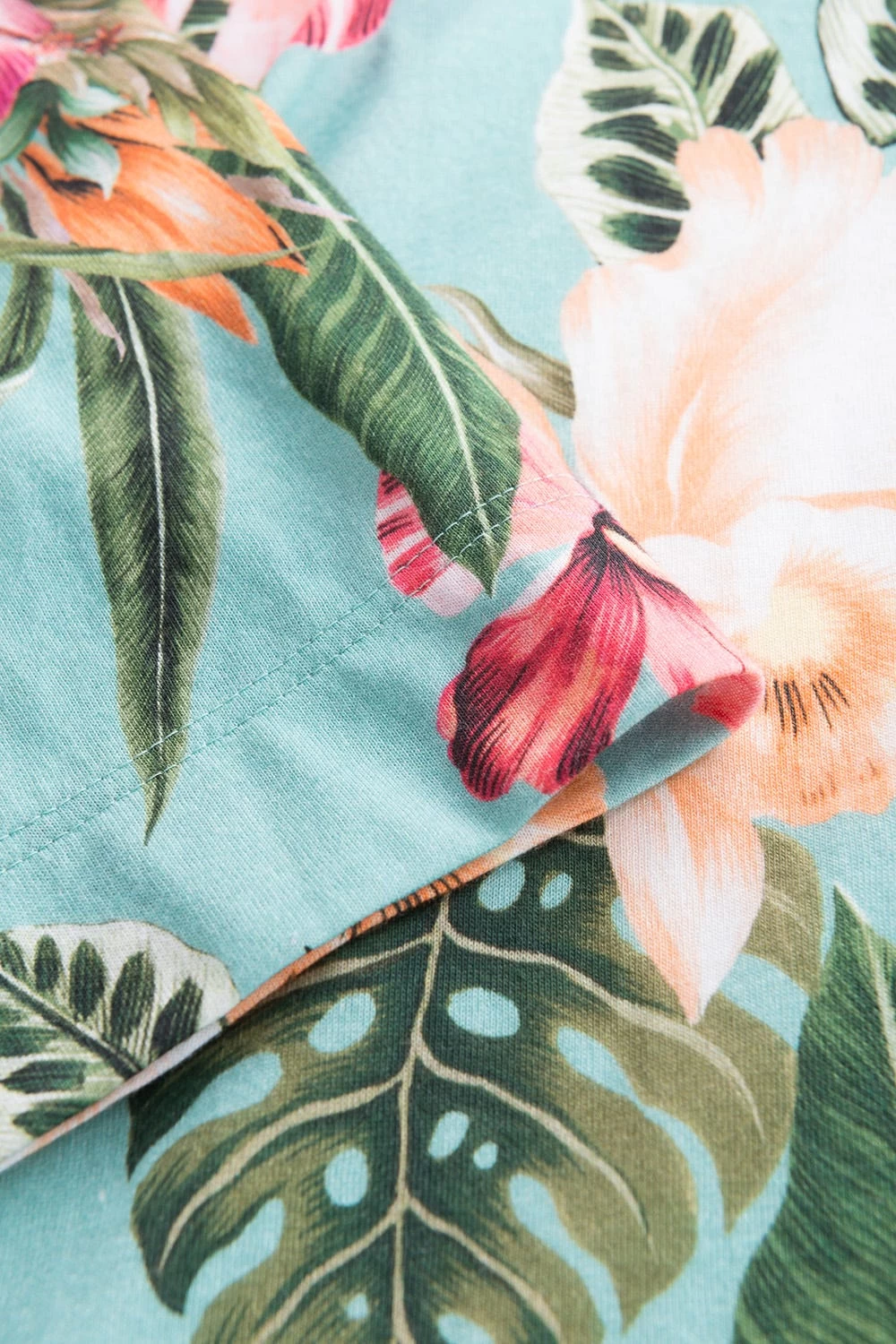 Stylischer Wickelmantel im tropischen Druck. Die Blenden an Dekolleté und die feine Paspelierung kreieren einen eleganten Look.