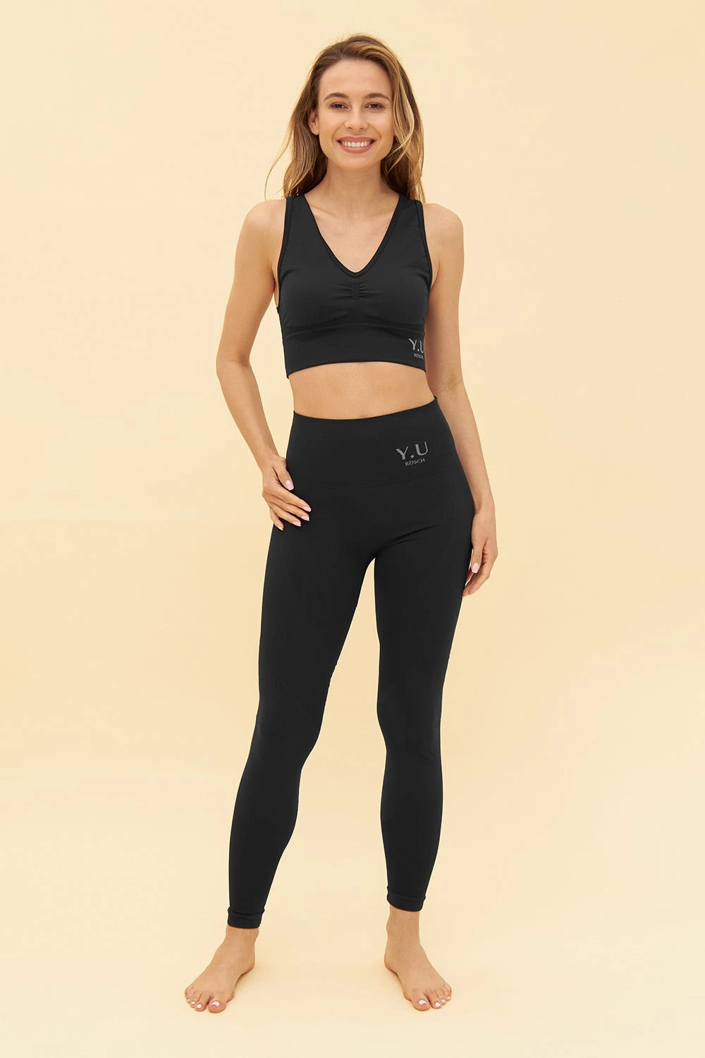 Sportliches Yoga Bustier mit Y.U Logo am Unterbrustband. Der enganliegende Schnitt mit Raffung und ohne störende Nähte (seamless) sorgt für Bewegungsfreiheit und Komfort. Das nachhaltige Material Q-Nova® besteht aus recyceltem Polyamid und ist besonders atmungsaktiv und formgebend.